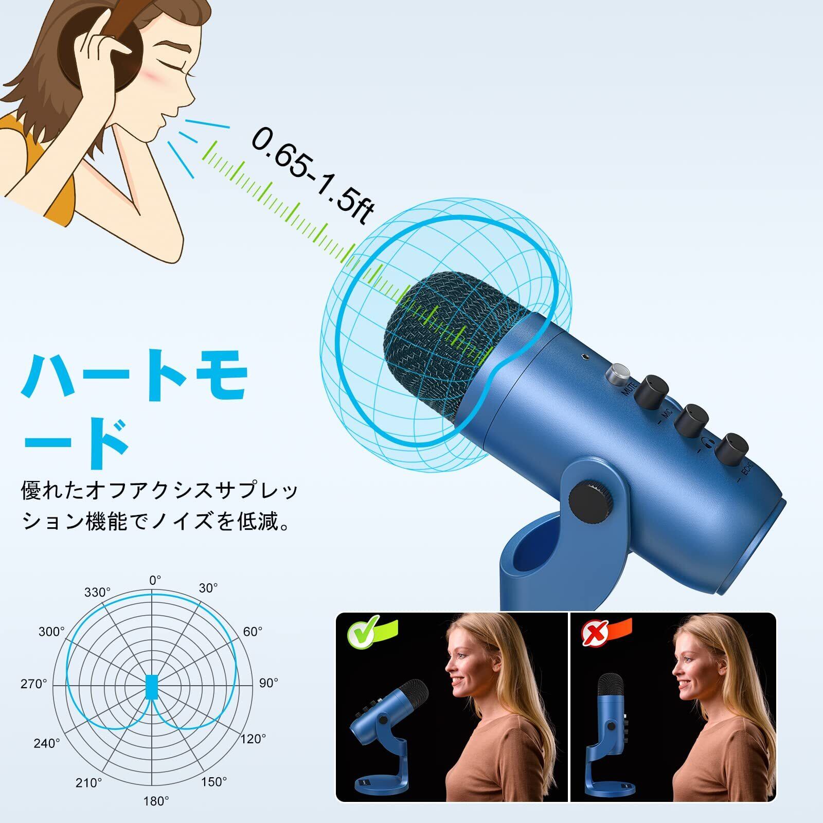 ZealSound USBマイク コンデンサーマイク PC用 卓上マイク 配信用 マイク 単一指向性 録音/ライブ配信/ゲーム実況/会議用 マイク エコー機能付き 高感度集音マイク YouTube/Skype/LINE 生放送 USB ミニマイク Windows/Mac/Android/PS4/PS5対応(青色)