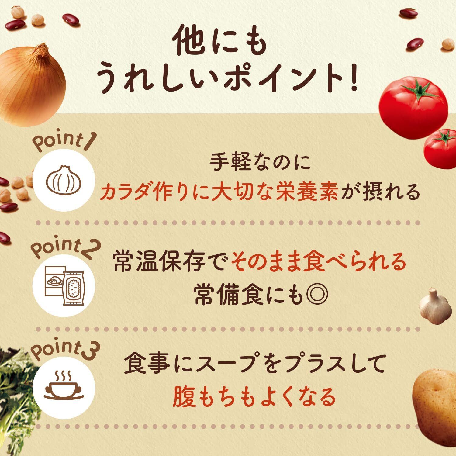 カラダ作りに大切なたっぷりの豆と野菜を、素材のおいしさが溶け込んだスープで食べる彩り豊かなおかずポタージュです。素材由来のおいしさと栄養感のある食事を、レンジでチンするだけで手軽にお楽しみ頂けます。