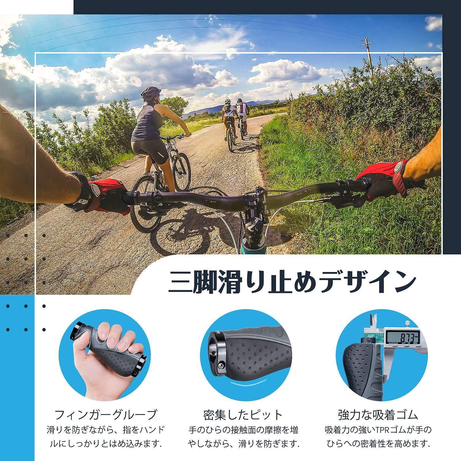 PRUNUS0702自転車ハンドルグリップ、滑り止めハンドルバーグリップ、耐衝撃性防水自転車人間工学に基づいたMTBグリップ、アルミニウム製ダブルロックオデザイン、ロードバイク、レーシングカーのマウンテンバイクハンドルなどほとんどの自転車に適しています。
