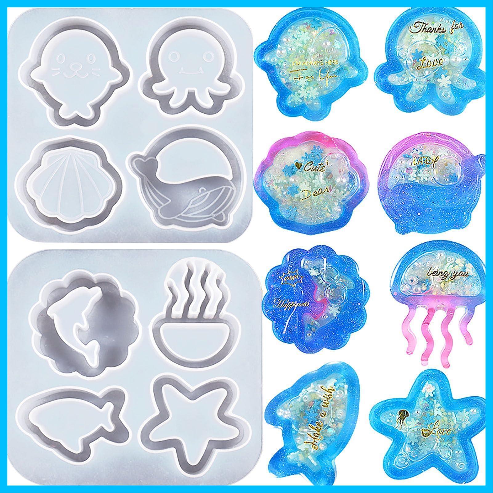 レジン型 シリコンモールド8 種類流砂型シェイカーモールド UVレジン シャカシャカ クラゲ 貝殻 星 シリコン型 モールド DIY 手作りキーホルダー イヤリング ペンダント アクセサリー モールド | グランメゾンショップ