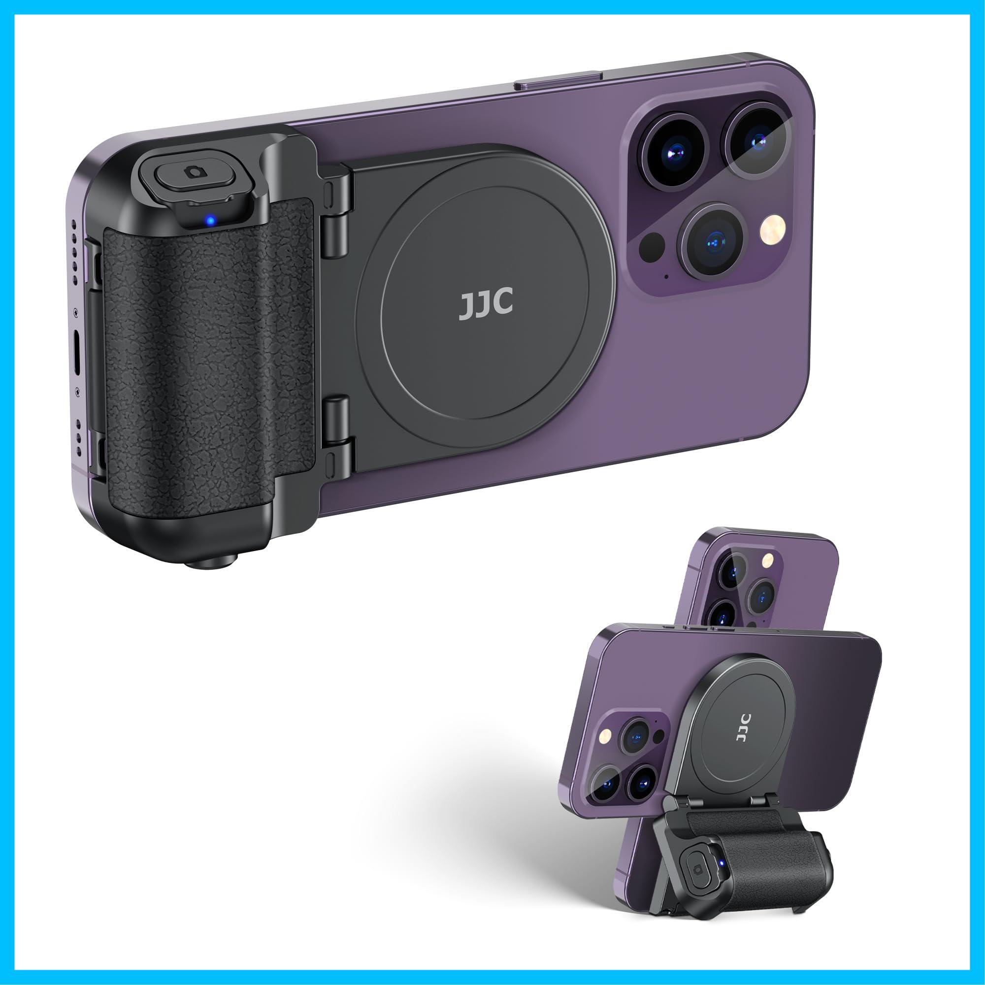 JJC 磁気 Magsafe スマホグリップ スマホホルダー スマホスタンド ワイヤレスリモコン付き スマートフォンホルダー 自撮りグリップ 1/4"-20ネジ穴付き 一脚 三脚 自撮り棒 iPhone 16 15 14 Androidに対応 超强磁力 片手操作 自撮り 写真 Vlog ビデオ撮影に適用 ブラック
