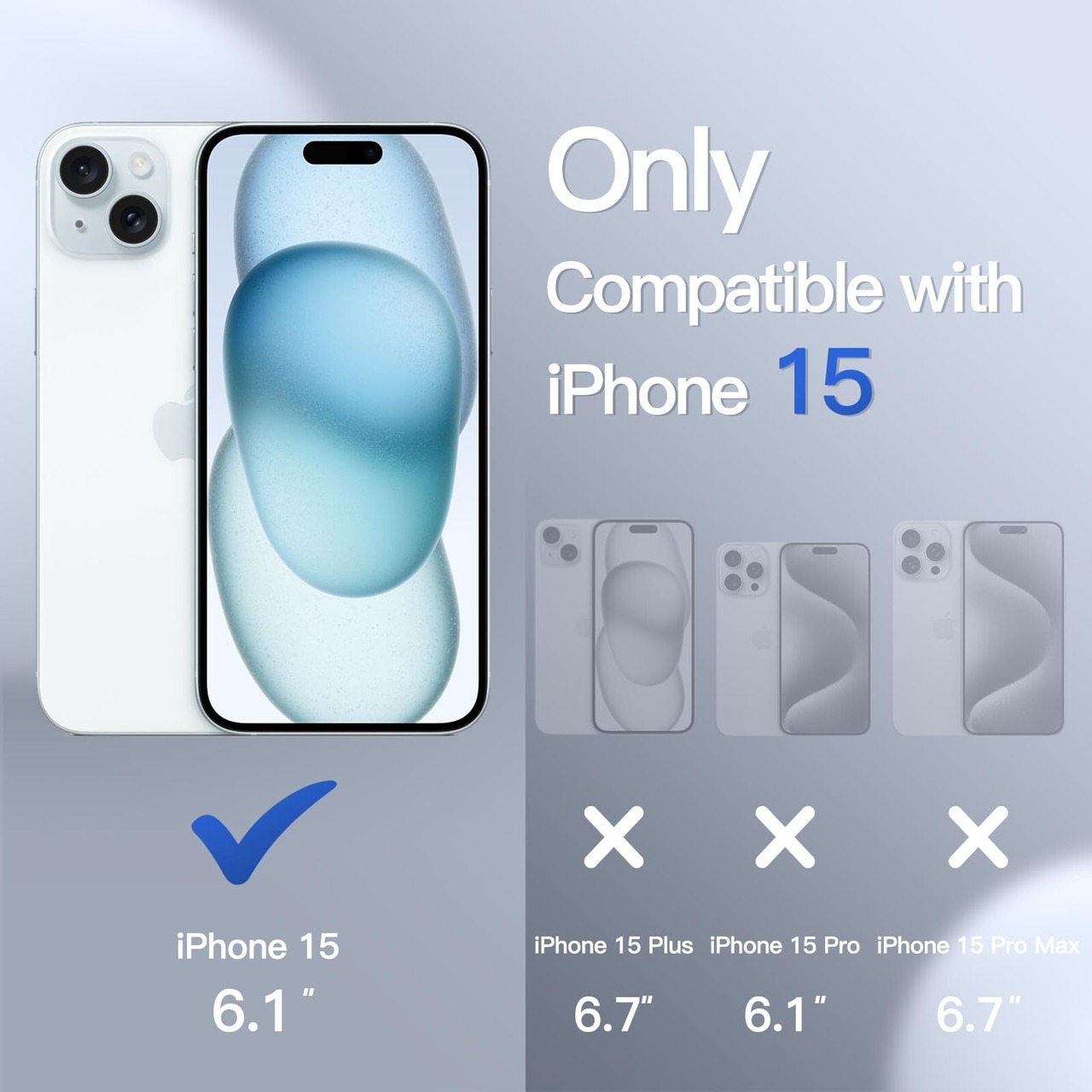 JEDirect マットケース iPhone 15 6.1インチ用 耐衝撃性ミリタリーグレードの落下防止 つや消しの半透明の背面電話カバー 指紋防止 (ブルー)