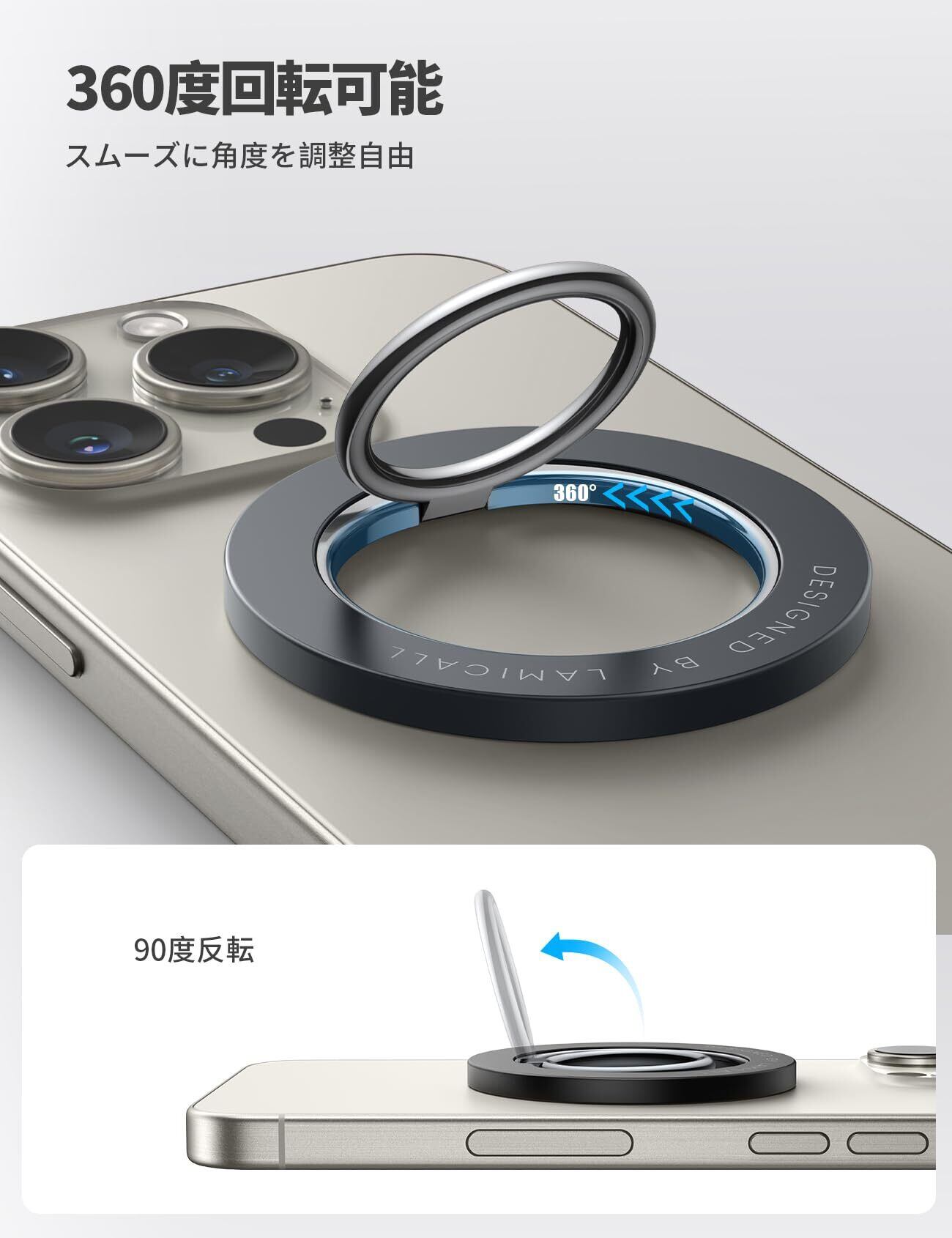Lamicall MagSafe対応 360度回転式 スマホリング : マグネット式 携帯電話 ホルダー リング マグセーフ バンカーリング 角度調整 スタンド 磁気増強 メタルリング付き 取り外し Magnetic Phone Grip iPhone 2024 iPhone 16 16 Plus 16 pro 16 pro max iphone 15/14/13 Android に対応 ブラック | グランメゾンショップ