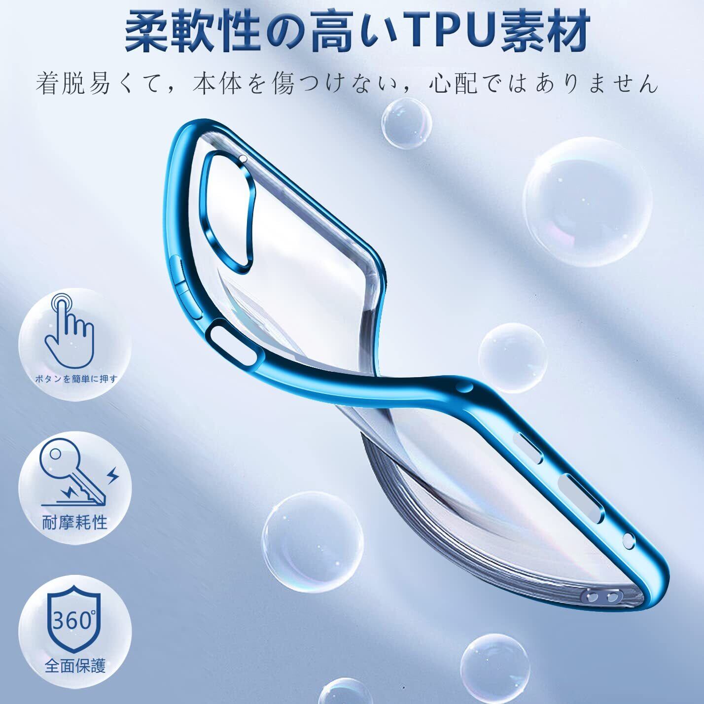 arrows N F-51C ケース クリア 透明 TPU 薄型 軽量 耐衝撃 メッキ加工 ソフトケース 人気 カバー(ブルー)