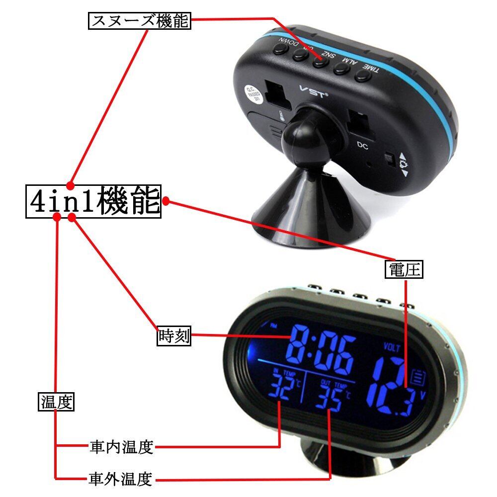 Boomboost 4in1機能 電圧計 時刻 車内外温度 アラームスヌーズ機能 ナイト クロック 時間ディスプレイ
