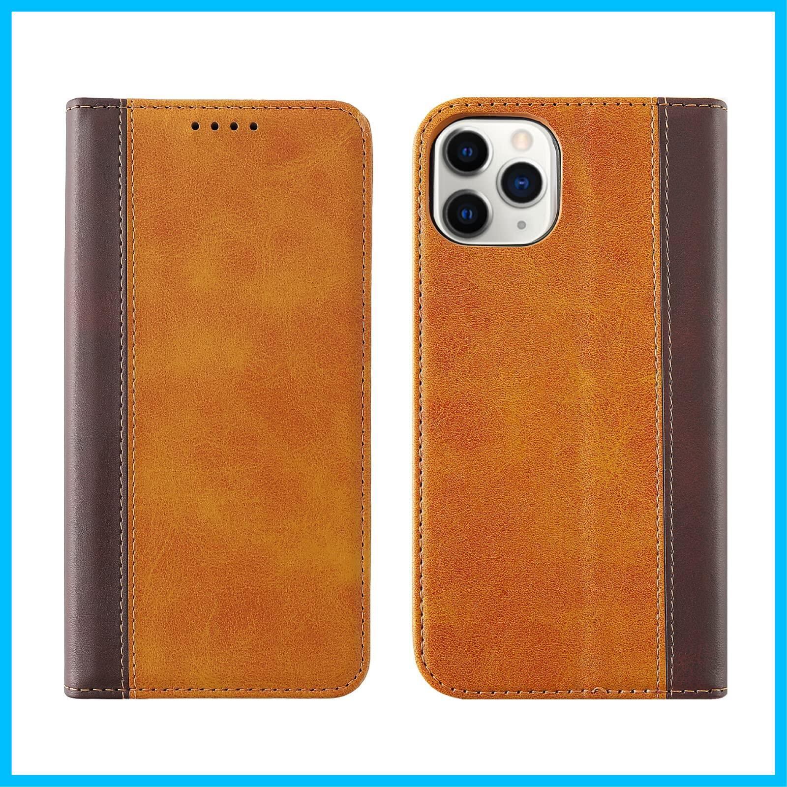 HanaRo iPhone12/12Pro ブラウン×ダークブラウン PUレザー 手帳型ケース ベルトなし マグネット アイフォン ケース カバー iPhone12ケース 12Proケース カード収納 | グランメゾンショップ