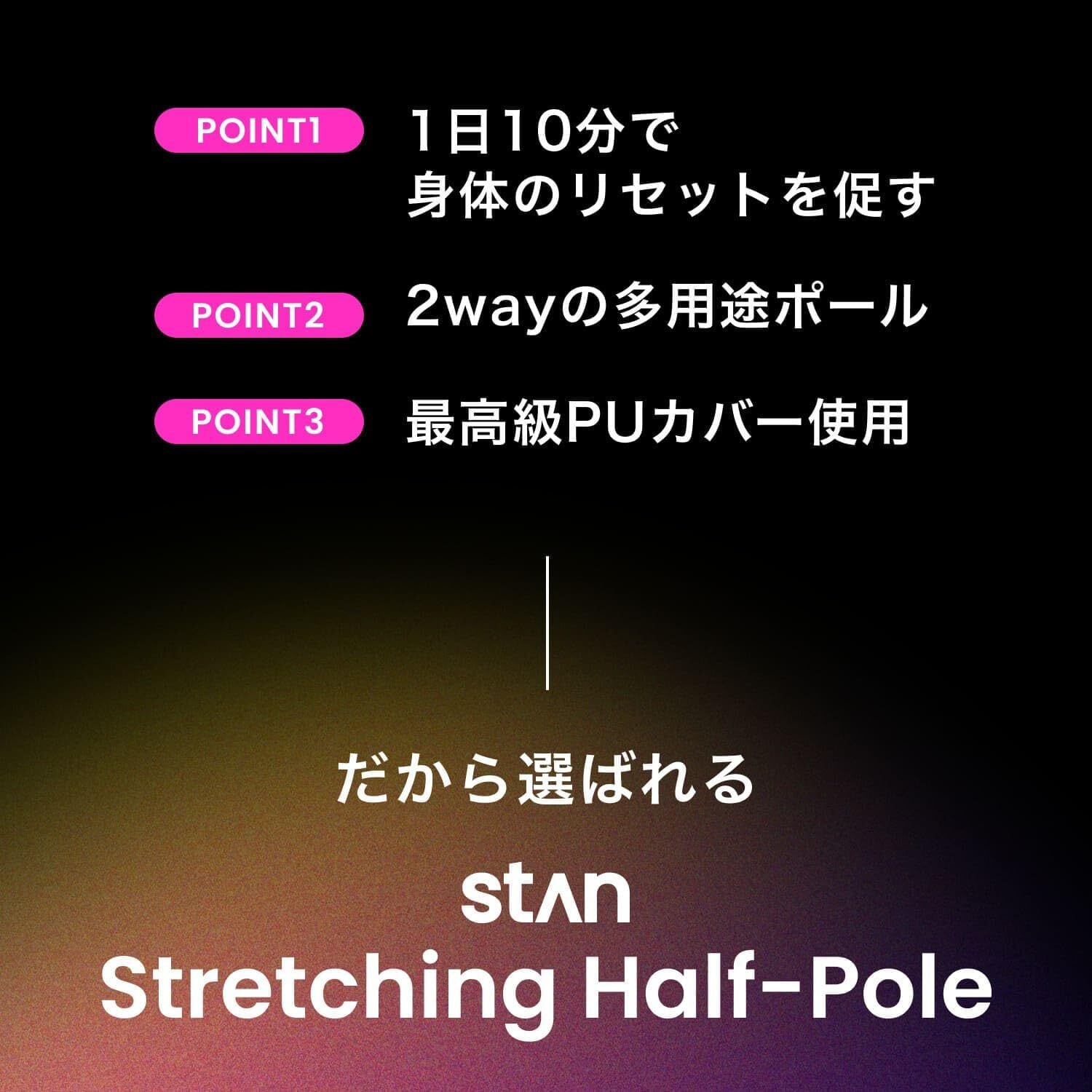 【 1日10分で身体をリセット 】stanハーフストレッチ用ポールセット は肩、腰、骨盤、膝、むくみなど身体の疲れをリセットすることができるセルフケアグッズです。自宅で手軽にストレッチや筋膜リリース、エクササイズなど身体のケアをすることができます。身体が硬い方、姿勢が気になる方、身体のパフォーマンスを上げたい方などに特にお勧めです。1日10分から使用し、身体メンテナンスの習慣を身に付けましょう。