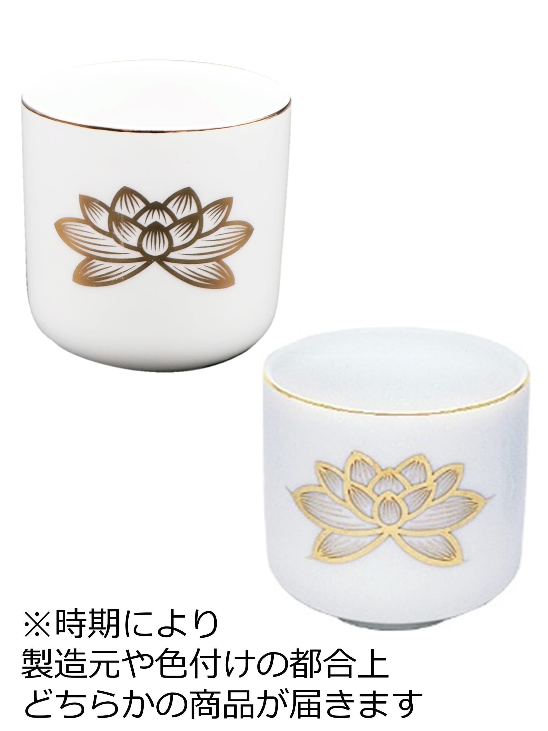 「白上金ハス 湯呑 1.6寸」は、ハスの絵柄の仏具です。