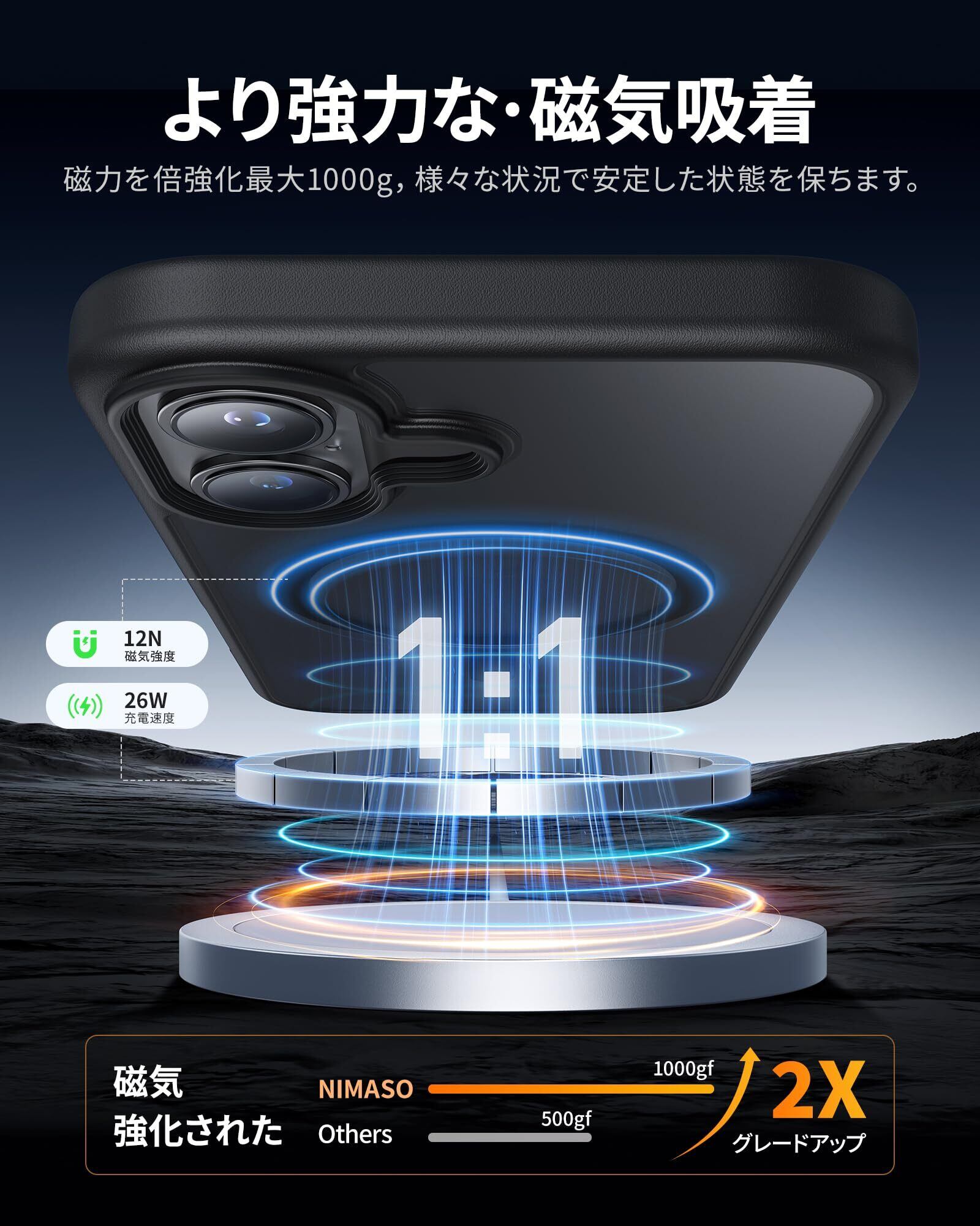 NIMASO iPhone 16 用 ケース MagSafe対応 スマホケース マグセーフ対応 カバー 滑り止め マット仕上げ いPhone16対応 全面保護 耐衝撃 米軍MIL規格取得 ワイヤレス充電 ストラップホール付き 携帯スマホケース アイフォン16対応 (6.1インチ) ブラック (黒羽シリーズ)NSC24G1448 | グランメゾンショップ