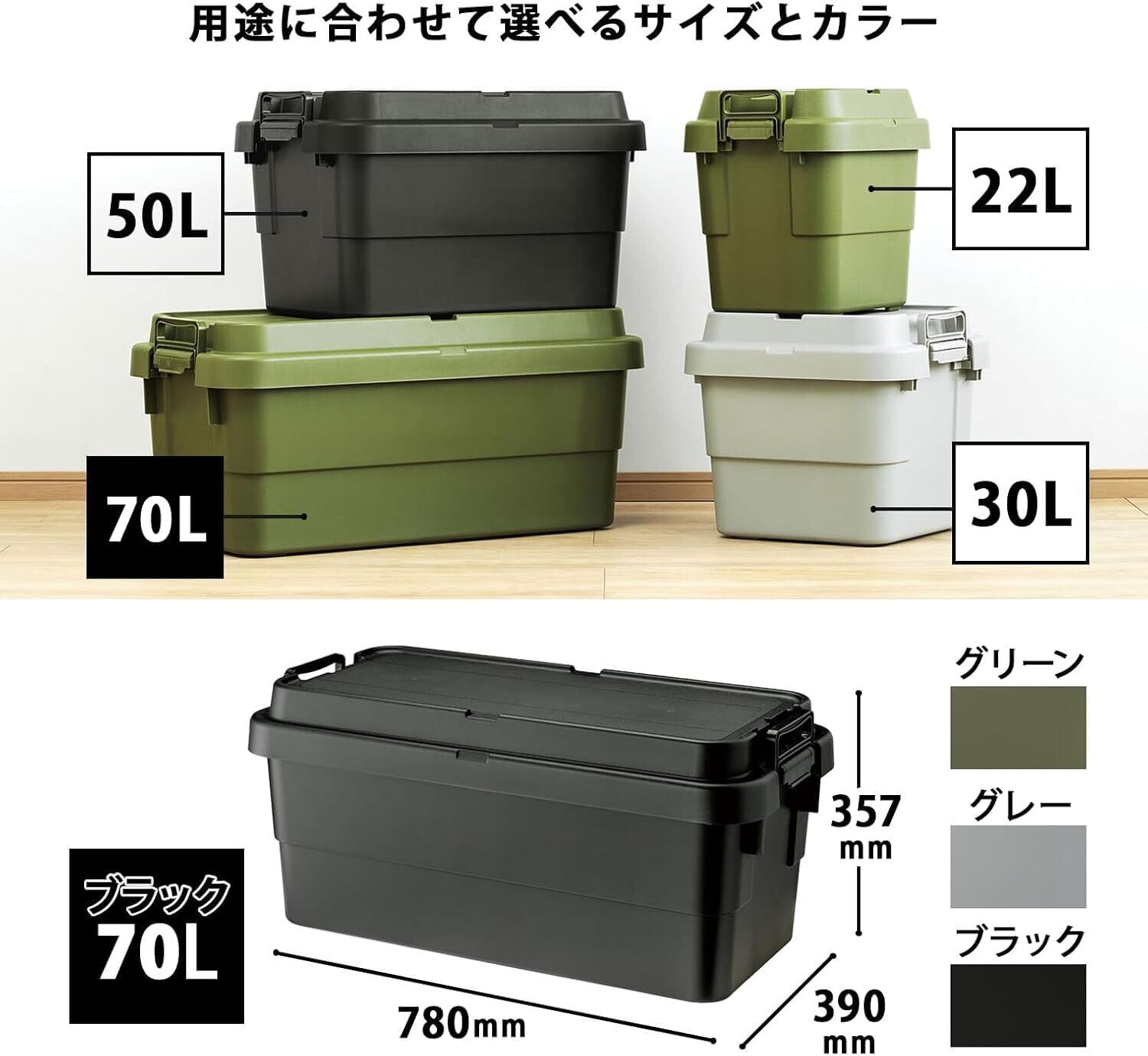 リス 収納ボックス スタッキング トランクカーゴ 70L ブラック 日本製 TC-70S