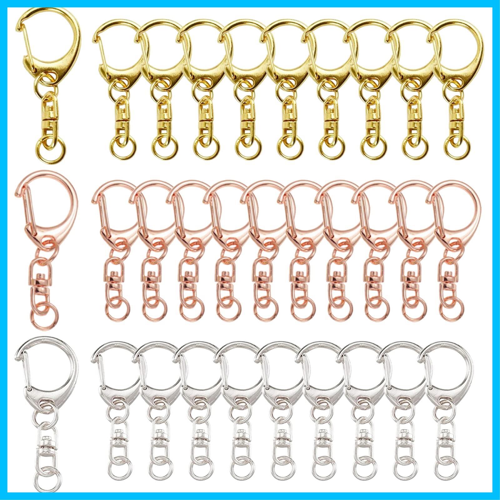 YFFSFDC キーホルダー金具3色30個入り回転カン付き ハンドメイド キーリング アクセサリー DIY 手芸用品 パーツ ゴールドシルバーローズゴールド