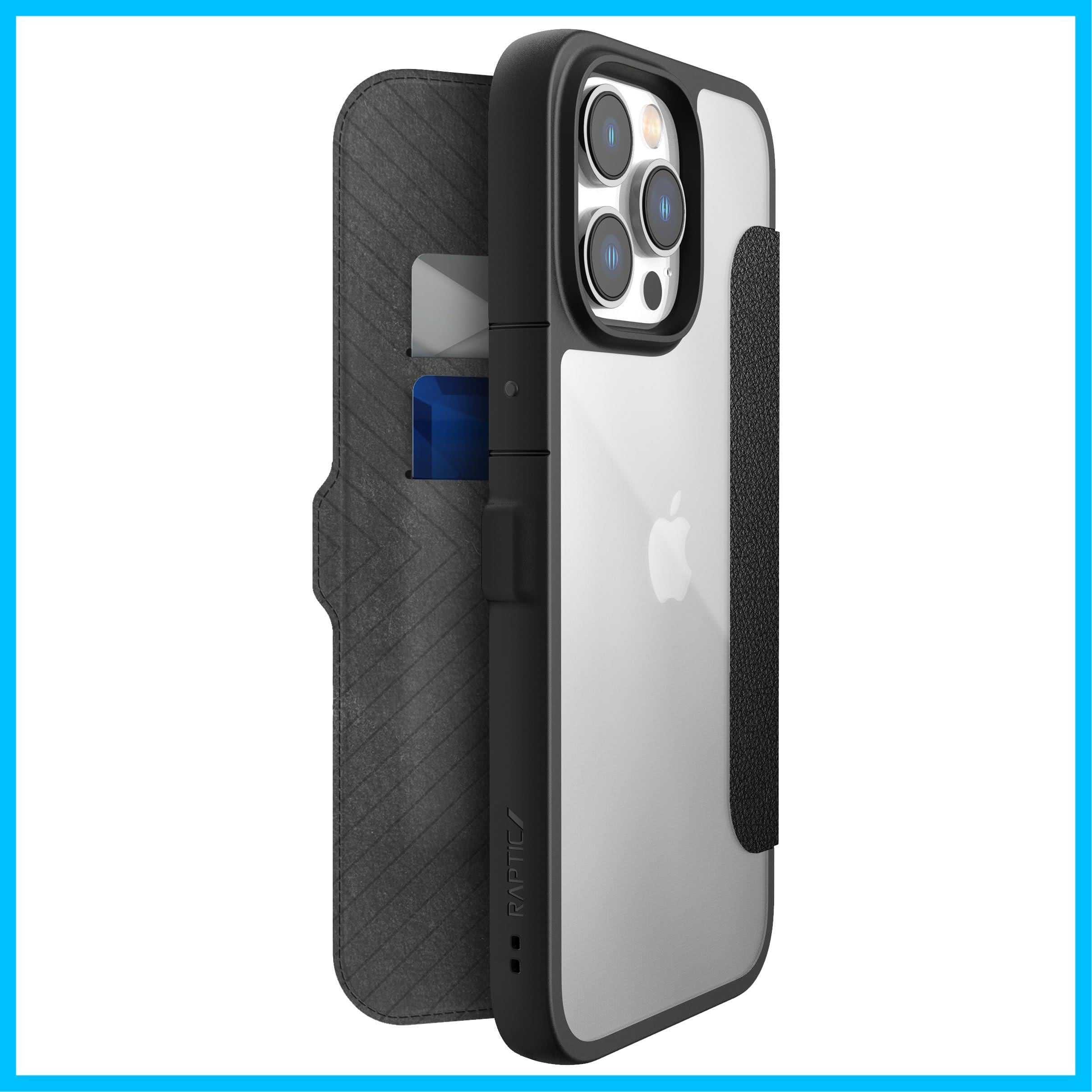 【RAPTIC】 iPhone15ProMax 対応 ケース 手帳型/カード 収納/耐衝撃 米軍 MIL 規格 クリア 合成皮 革 素材 背面 透明 手帳型ケース マグネット 式 手帳型 スマホケース [ Apple iPhone15 ProMax アイフォン15 プロマックス 対応 携帯ケース ] iPhone15ProMaxケース Urban Folio ブラック