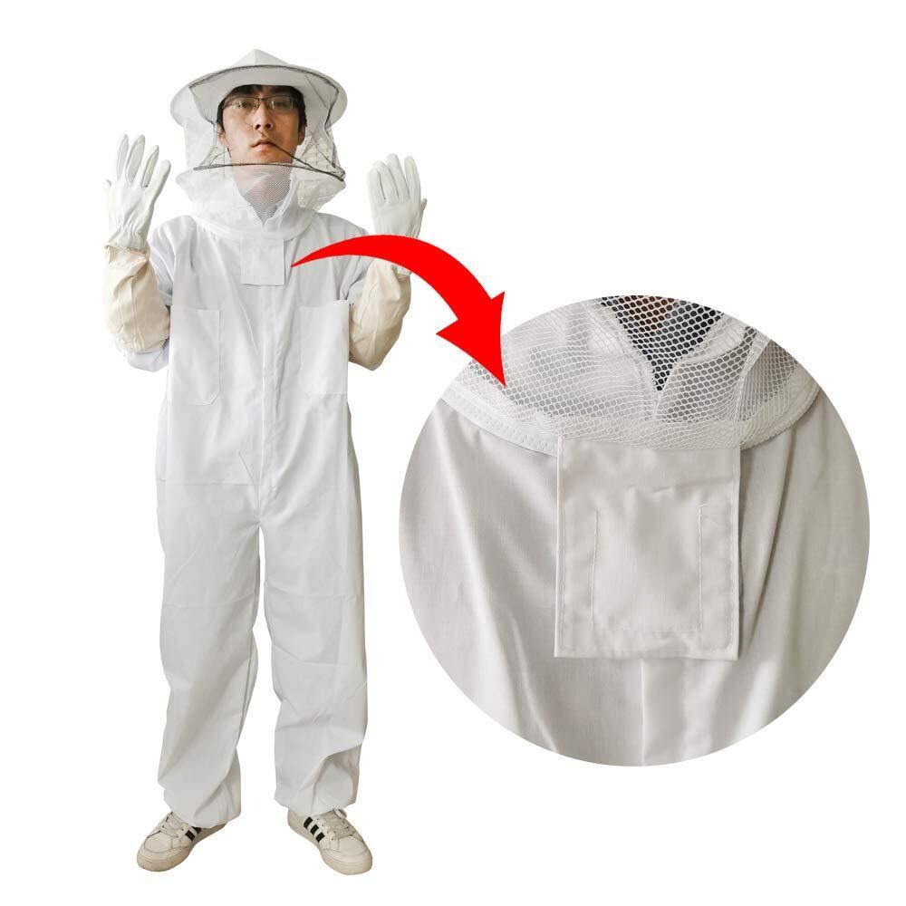 [Giyomi] 養蜂用 蜂防護服 フェイスネット付 蜂除け 繋ぎ服 & 手袋 2点セット 蜂巣 害虫駆除 虫よけ 取り外しやすい 鉄壁ガード 作業服