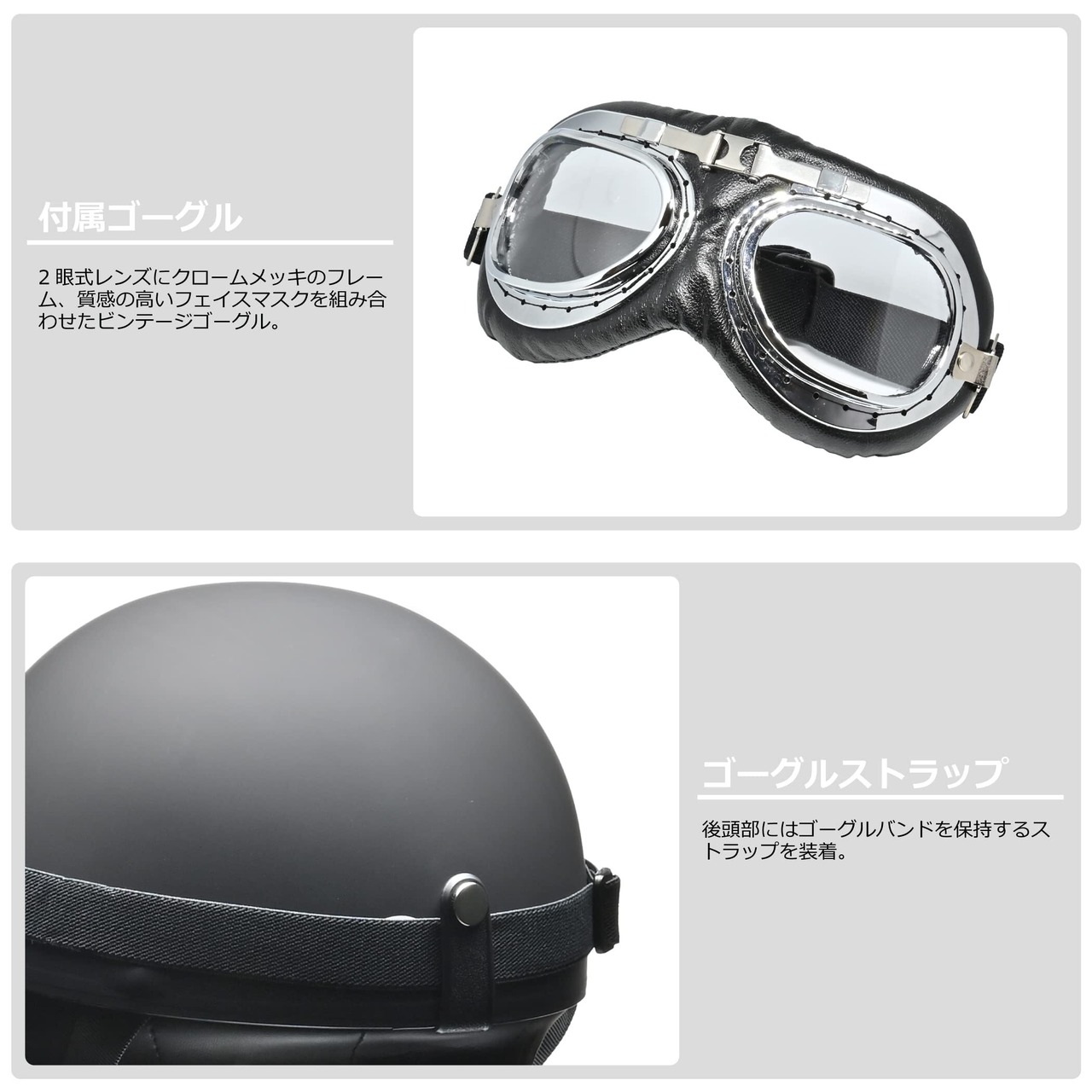 イヤーカバーと角型ゴーグルを装着した正統派ビンテージヘルメット。