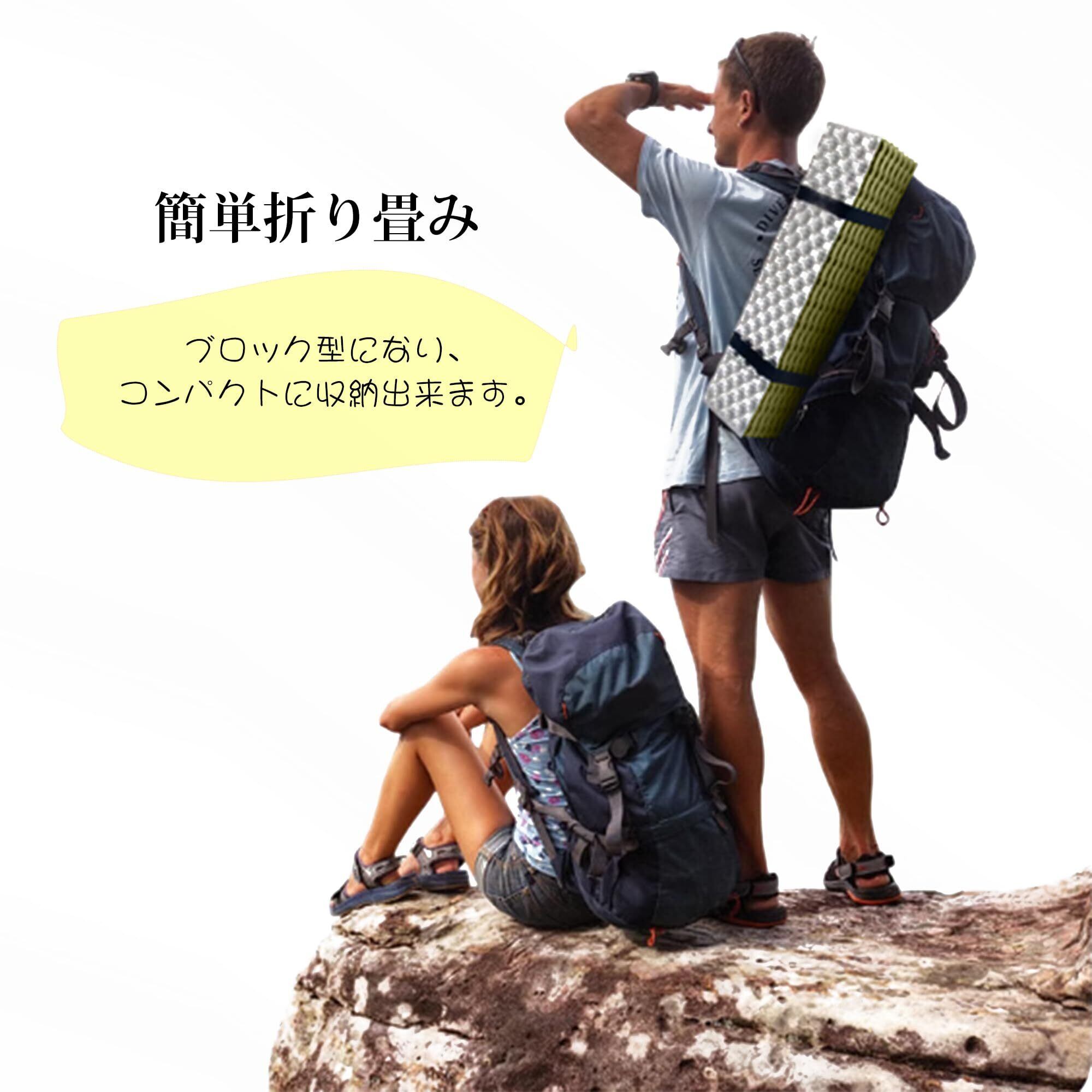 【様々なシーンで大活躍】登山やキャンプをするときは、寝るクッションとして体の下に置いてください。 屋外では、地面に置いたときのクッションとしても使用できます。 寝袋の下に置いて、平らでない場所でも快適に眠れます。自宅では、床に置いて、友達や家族が急に訪れたときのベッドとしても使えます。【ご使用上の注意】 本製品を地面に敷く「マット」としての用途以外には使用しないでください。 それ以外の目的で使用された場合のは致しかねます。 本製品は耐熱素材であり、温度に耐えますが、難燃性、難燃性はありません。