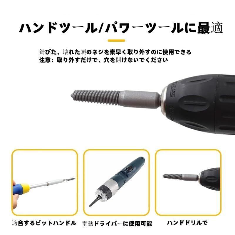 5. 破損スクリューエクストラクター:破損したボルトやネジも取り外すことができるので、DIYや車の修理におすすめです。"