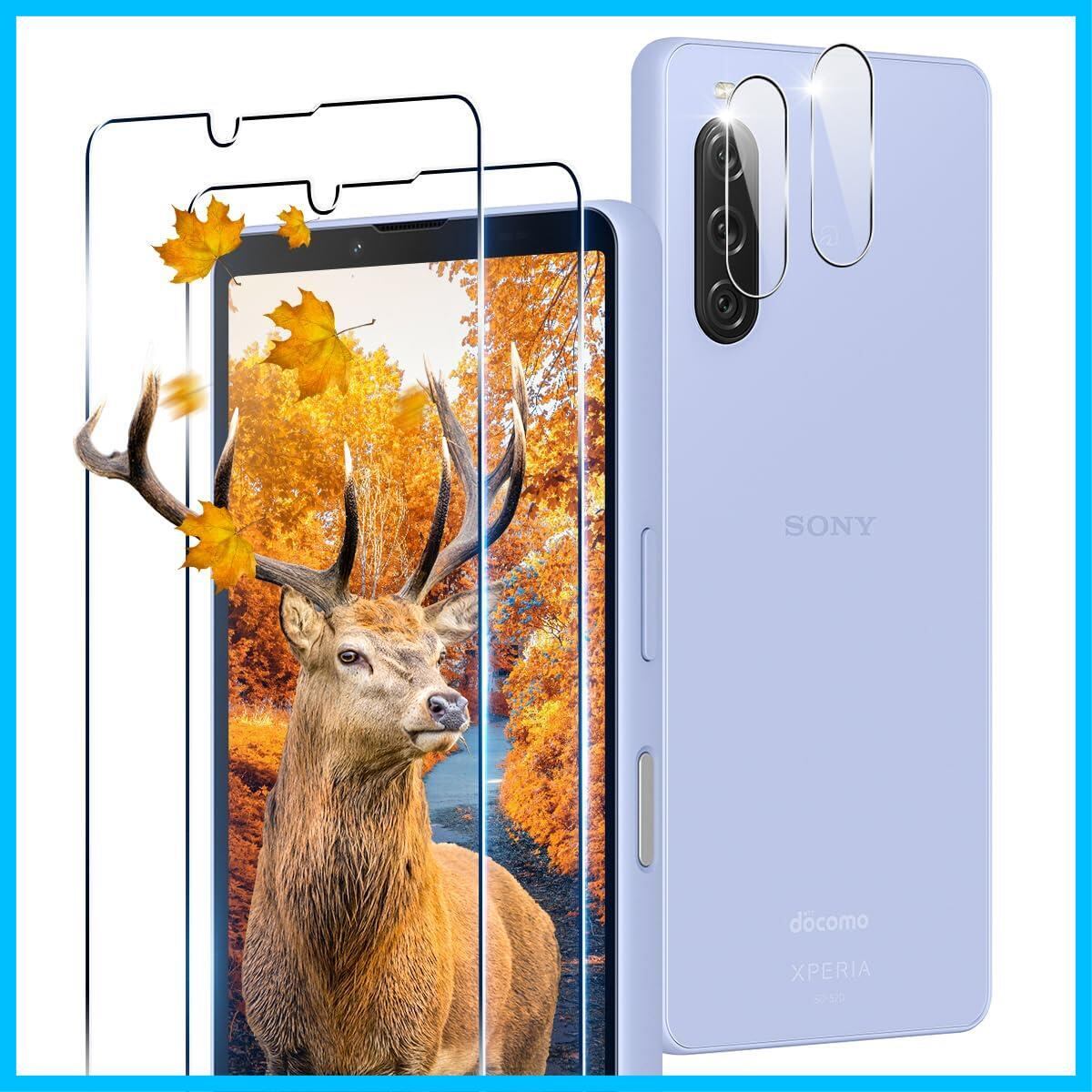 【2+2枚セット 指紋認証対応】 用 Xperia 10 V ガラスフィルム 2枚 Xperia 10V SO-52D SOG11 フィルム + 2枚 カメラ保護フィルムセッ 【 日本旭硝子製 9H強度 】 対応 エクスペリア10 V 強化ガラス 全面 保護フィルム ケース 高透過率 3D Touch対応 厚さ0.26超薄型 飛散防止 高感度 耐衝撃 指紋・汚れ防止 ゼロ気泡 ラウンドエッジ加工 簡単貼り付け