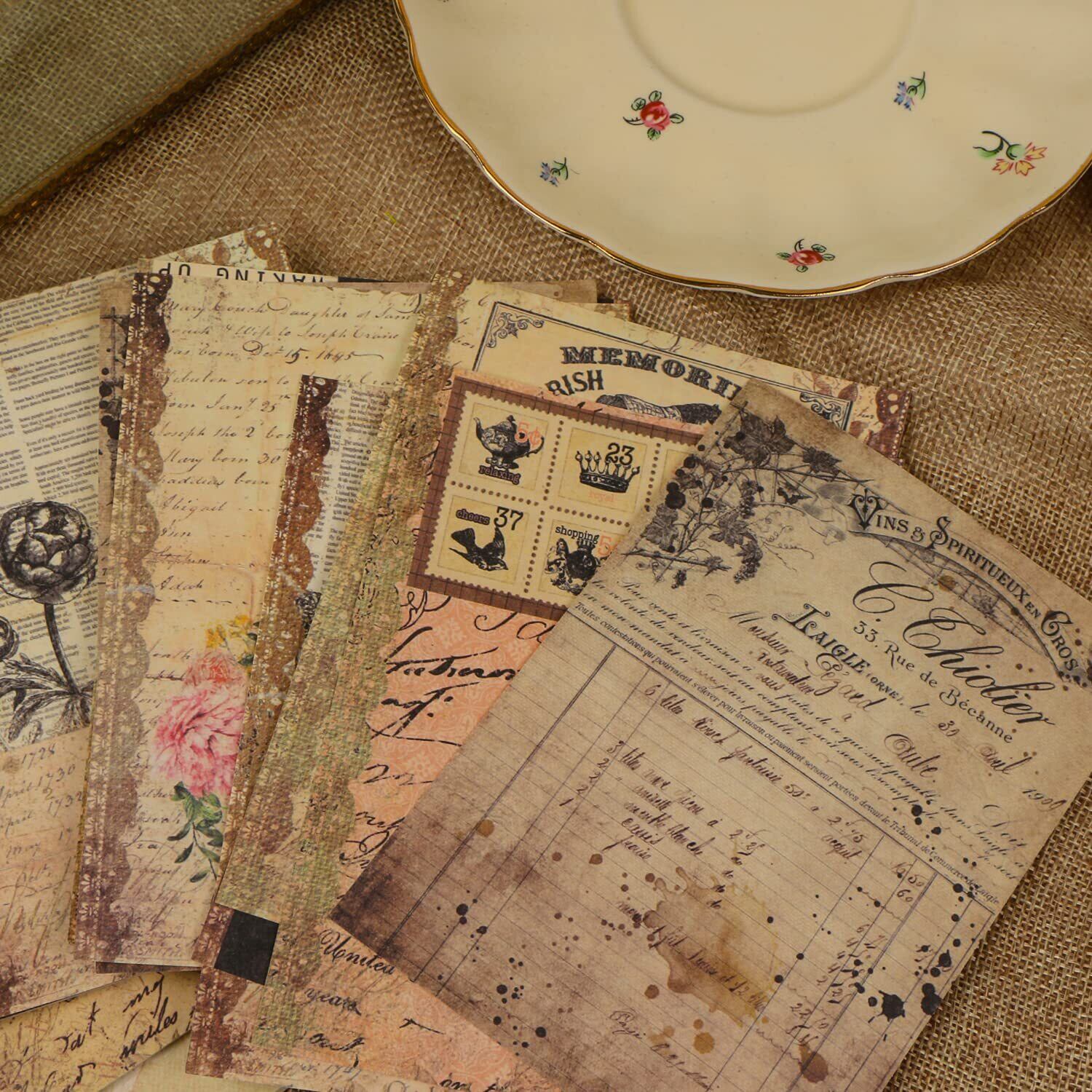 YOVOY コラージュ 素材 デザインペーパー レトロ 素材紙 おしゃれ かわいい 両面印刷 手帳素材紙 花 風景 植物 背景紙 ギフト包装紙 アンティーク ヴィンテージ素材紙 コラージュ ノート 日記 カレンダー スケジュール 100枚 (レター) | グランメゾンショップ