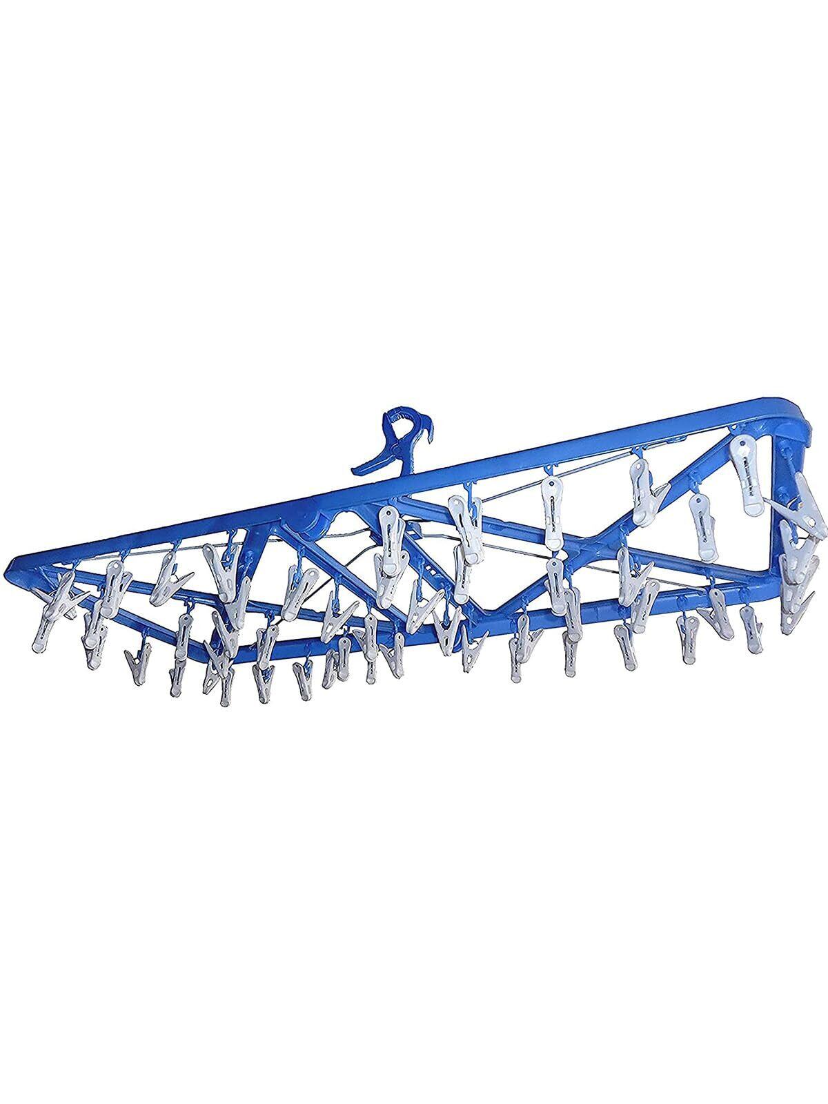 水勘製簾所 洗濯 物干し ワイヤー角ハンガー 折りたたみ式 ピンチ 52個付き 部屋干し カモイフック付き ブルー 約幅84㎝×奥行39㎝×高さ30㎝(展開時)