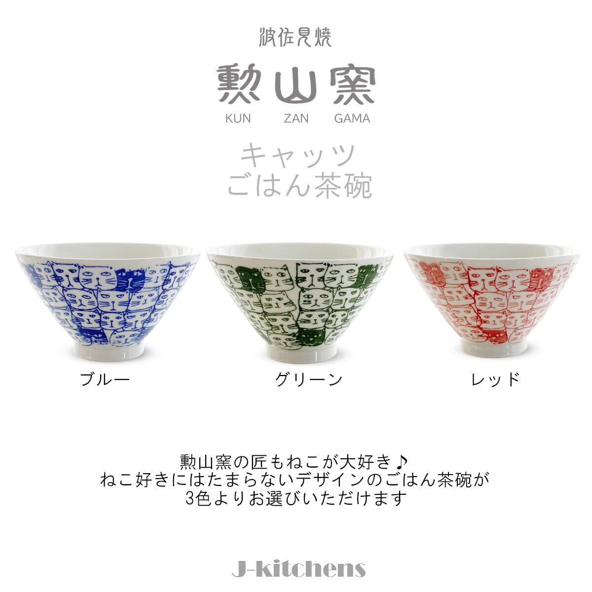 J-kitchens 勲山窯 茶碗 11cm 波佐見焼 日本製 キャッツ レッド