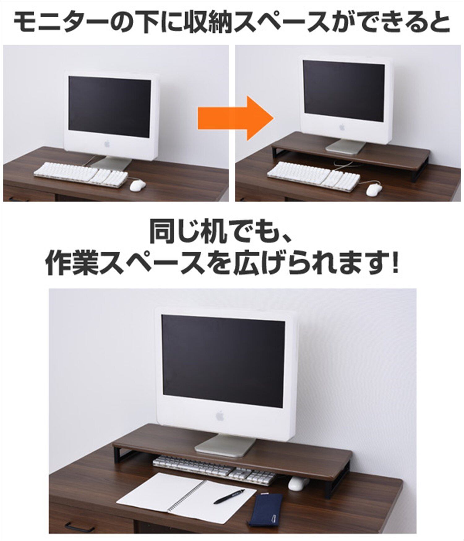 ●キーボードやマウスを収納してデスク上を有効活用できるモニタースタンド