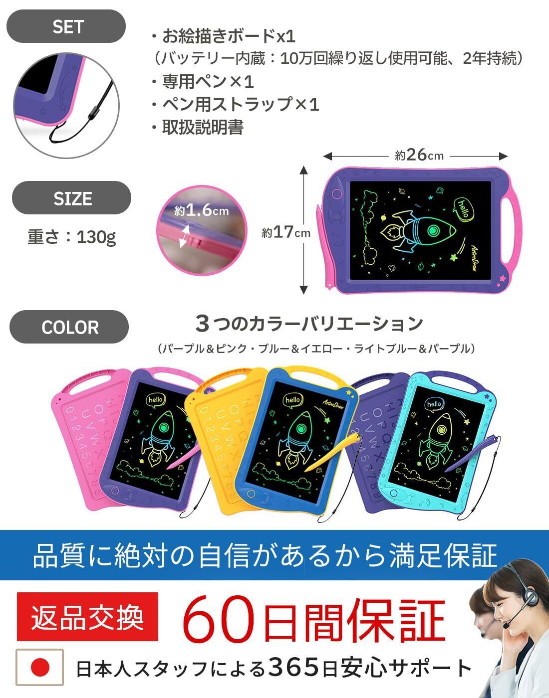 【日本正規品】おもちゃ お絵描きボード 電子メモパッド【知育のプロ推薦】1歳 2歳 3歳 4歳 5歳 6歳 プレゼント【食品衛生法試験合格】電子メモ ブギーボード 高輝度 カラフルスクリーン 繰り返し書いて消せるお絵かきボード 子供 幼児教育 学習 塗り絵 落書き 知育玩具 女の子 男の子 誕生日 保護ケース付き (パープル&ピンク)
