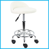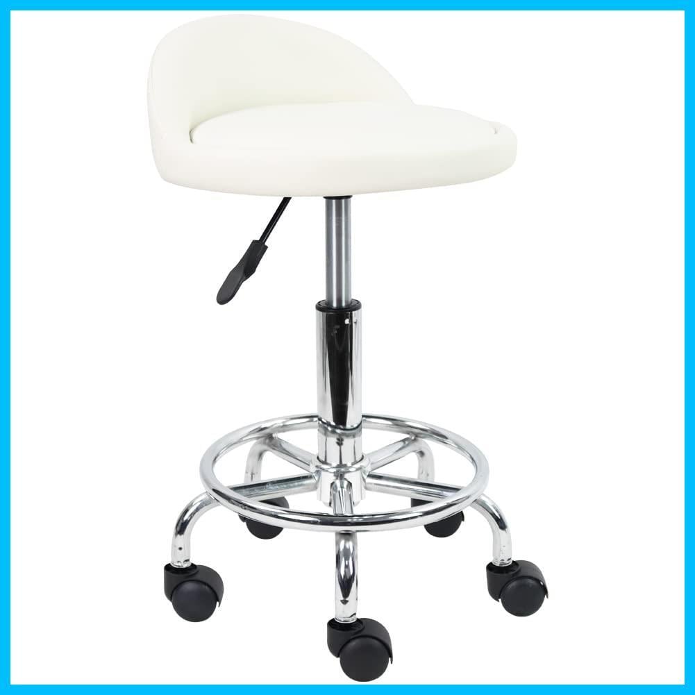 KKTONER ローリング 低い背もたれ昇降スツール PUレザー回転椅子 学習仕事SPA診察カウンター フットレストキャスター付き チェア (White)