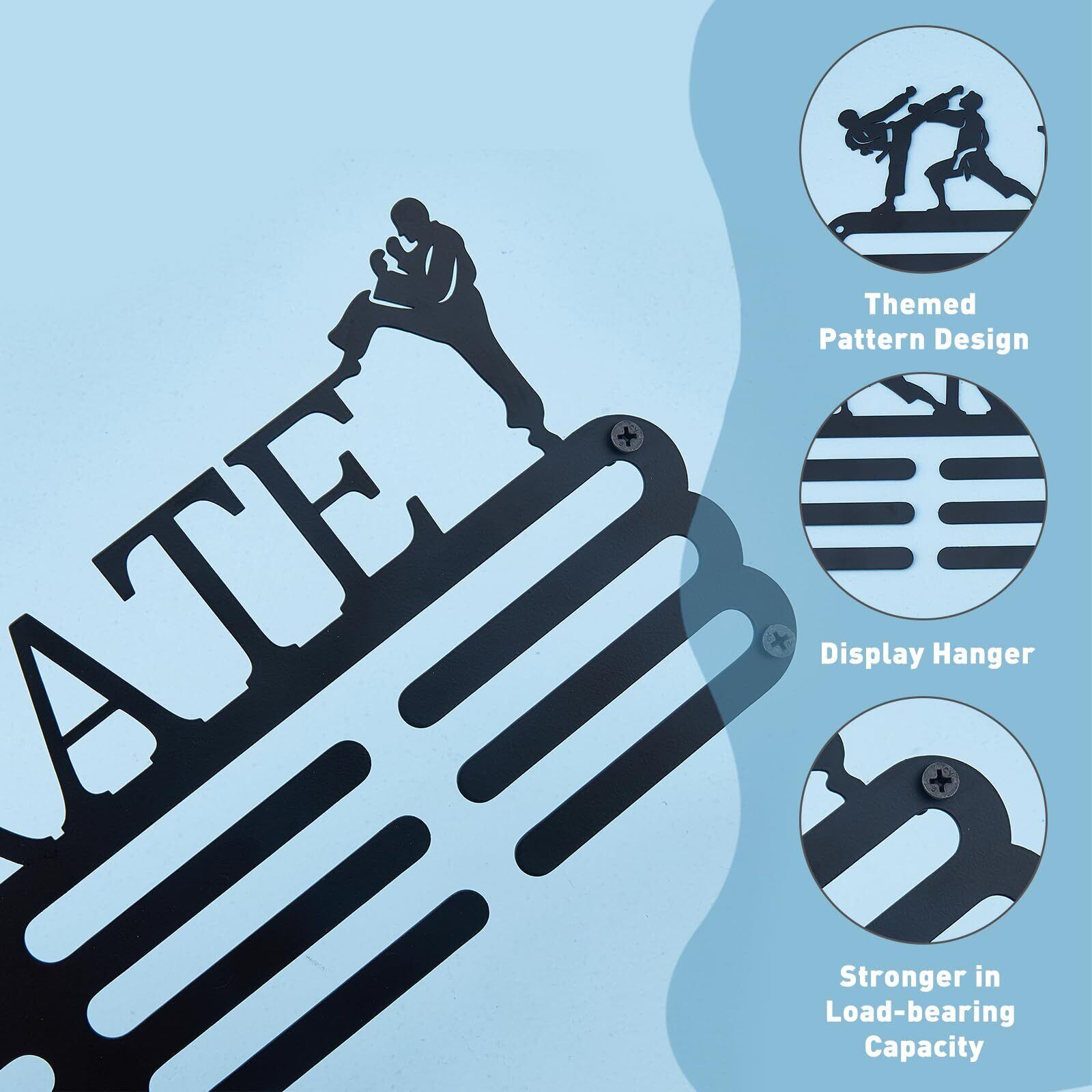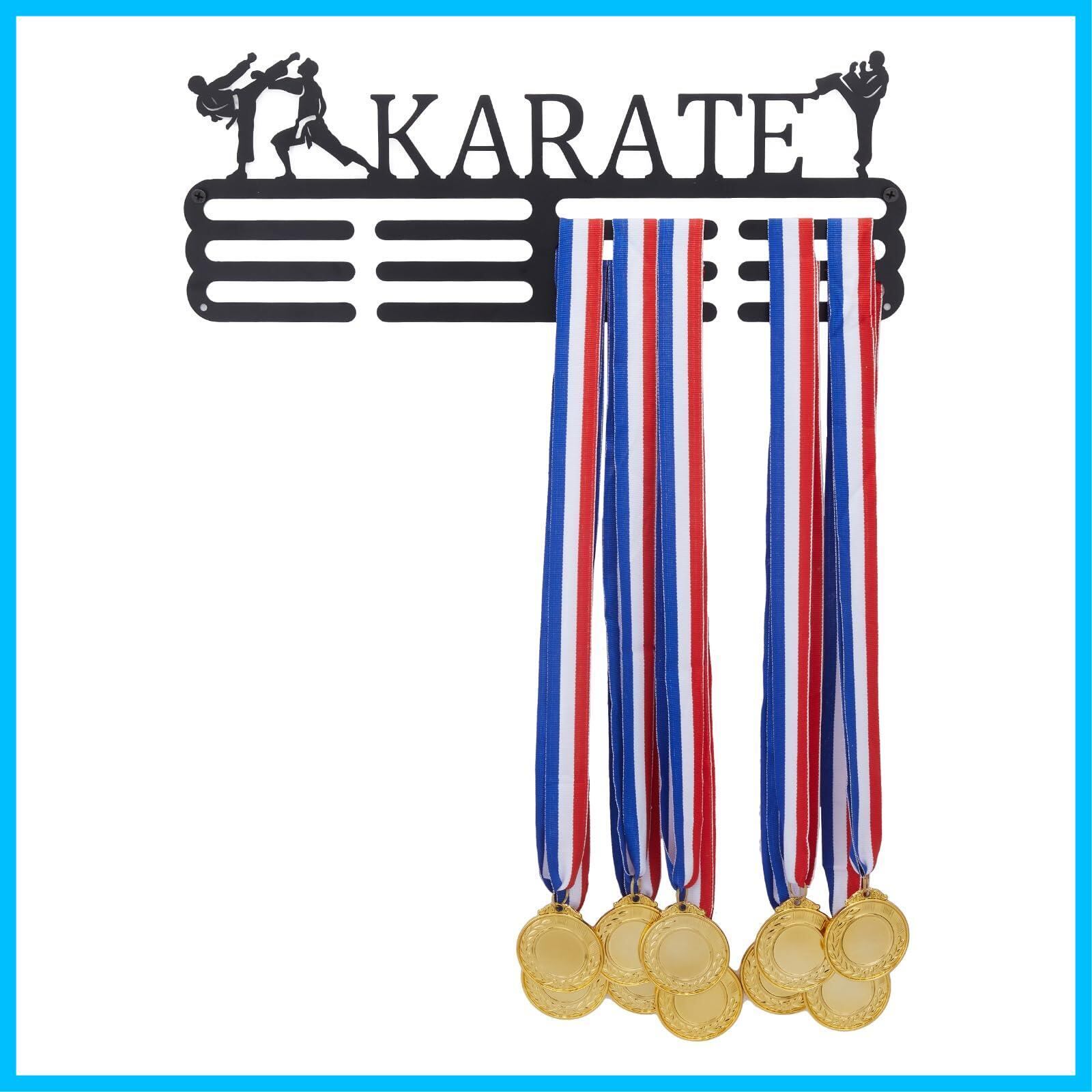 【空手テーマ】テコンドーをテーマにし、「KARATE」という言葉でデザインされたメダルハンガーです。このモチベーションを高めるメダルディスプレイラックは、スポーツが好きな方のためにクリエイティブなデザインで、成功したキャリアに変わりました。