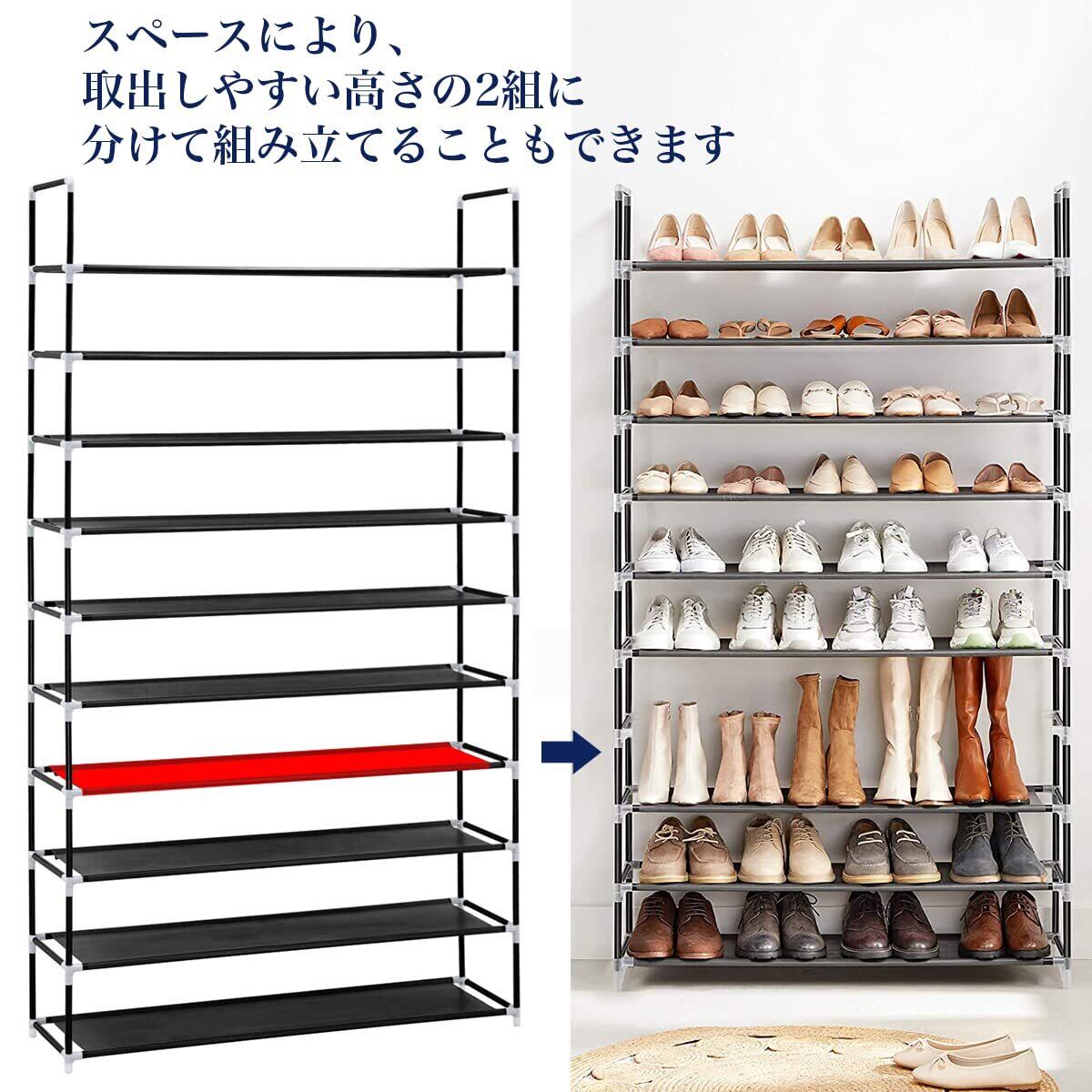 【シューズラック 組み立て簡単、分解容易】軽量且つ取り外すも可能で、引っ越しする時はすごく便利です。組立はあまり力を要らず、工具も不要な,女性の方でも手軽に組み立てることができます!日本語説明書付き