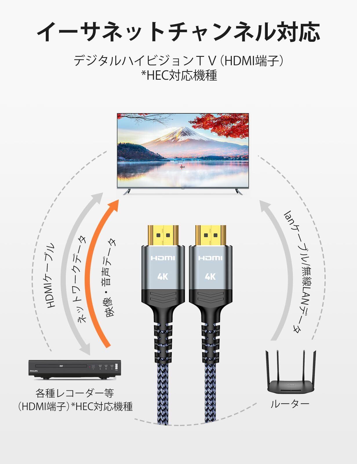 【多様な出力対応】HDMI ケーブルはApple TV 4K, ブルーレイプレーヤー, Fire TV, Roku Ultra, PS5,PS3, Xbox One/360, Wii U, Nintendo Switch,テレビやモニターとパソコン、レコーダー・プレイヤー、AVアンプ、ゲーム機などを接続するにおすすめするHDMI-HDMIケーブルです。