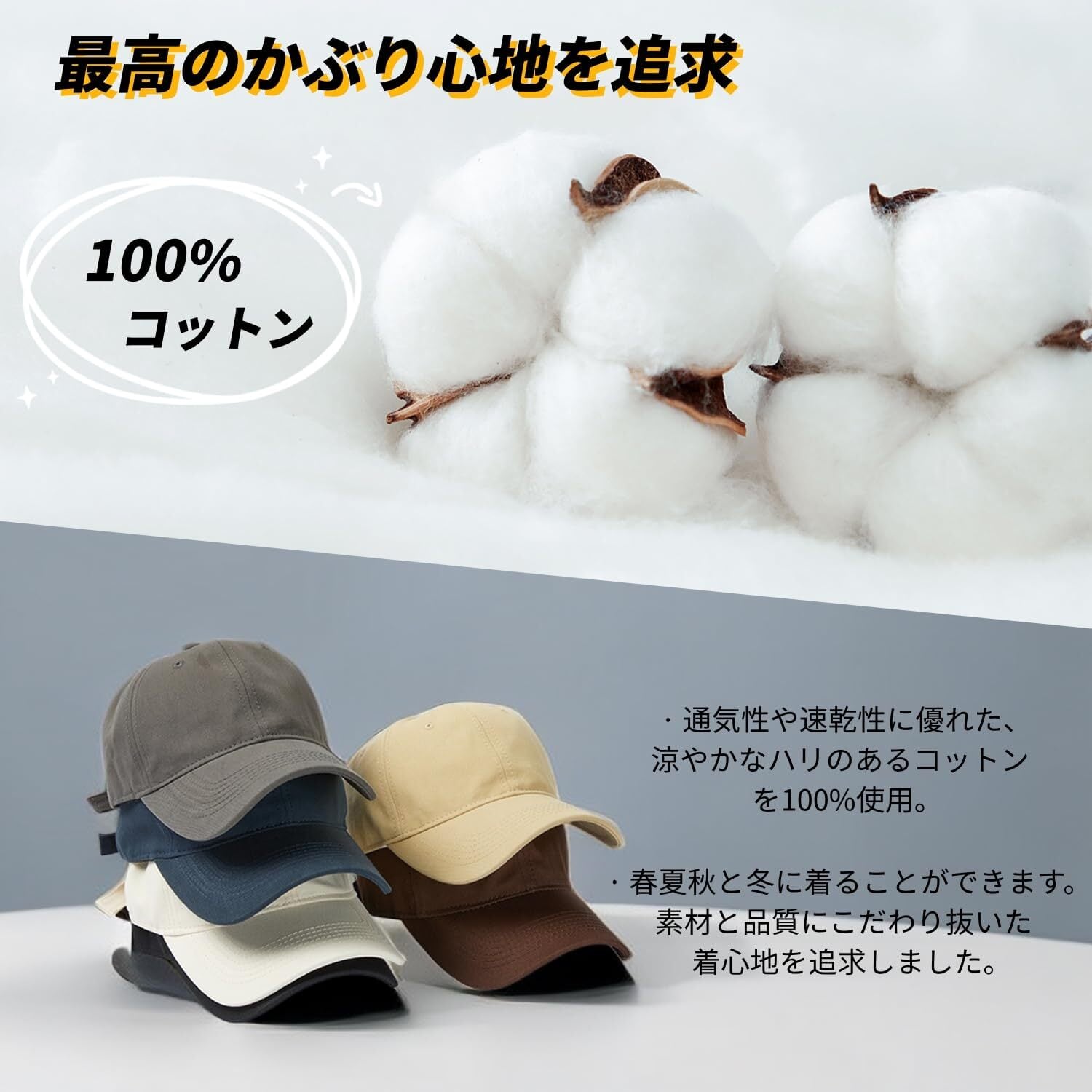 [Hsdvdva] キャップ メンズ 大きいサイズ 帽子 コットン100% 特大60-65cm 深め 紫外線対策 日よけ 無地 人気 野球帽 ランニング スポーツ 男女兼用