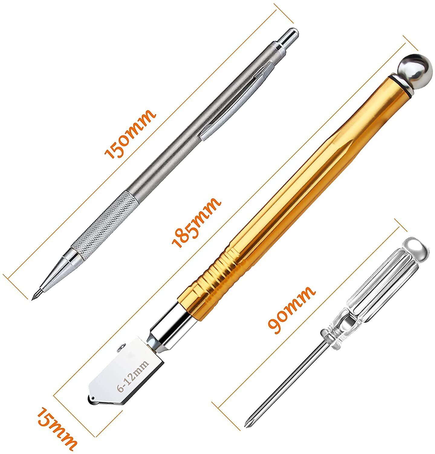 ガラスカッターはガラスだけではありません。鏡やタイルにも使用できます。全長(mm):185; 刃部材質:特殊硬質合金鋼; 柄材質: アルミニウム合金