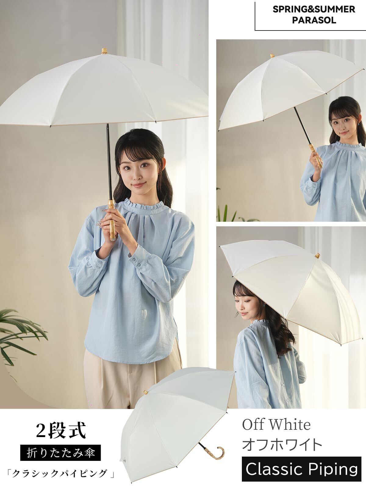 KIZAWA 日傘 UVカット 100 遮光 二段式 折りたたみ日傘 長傘 逆折り 2段折り 完全遮光 日傘兼用雨傘 レディース 5級撥水 折り畳み日傘 軽量 遮熱 晴雨兼用 かわいい 母の日のプレゼント バンブー 持ち手 | グランメゾンショップ