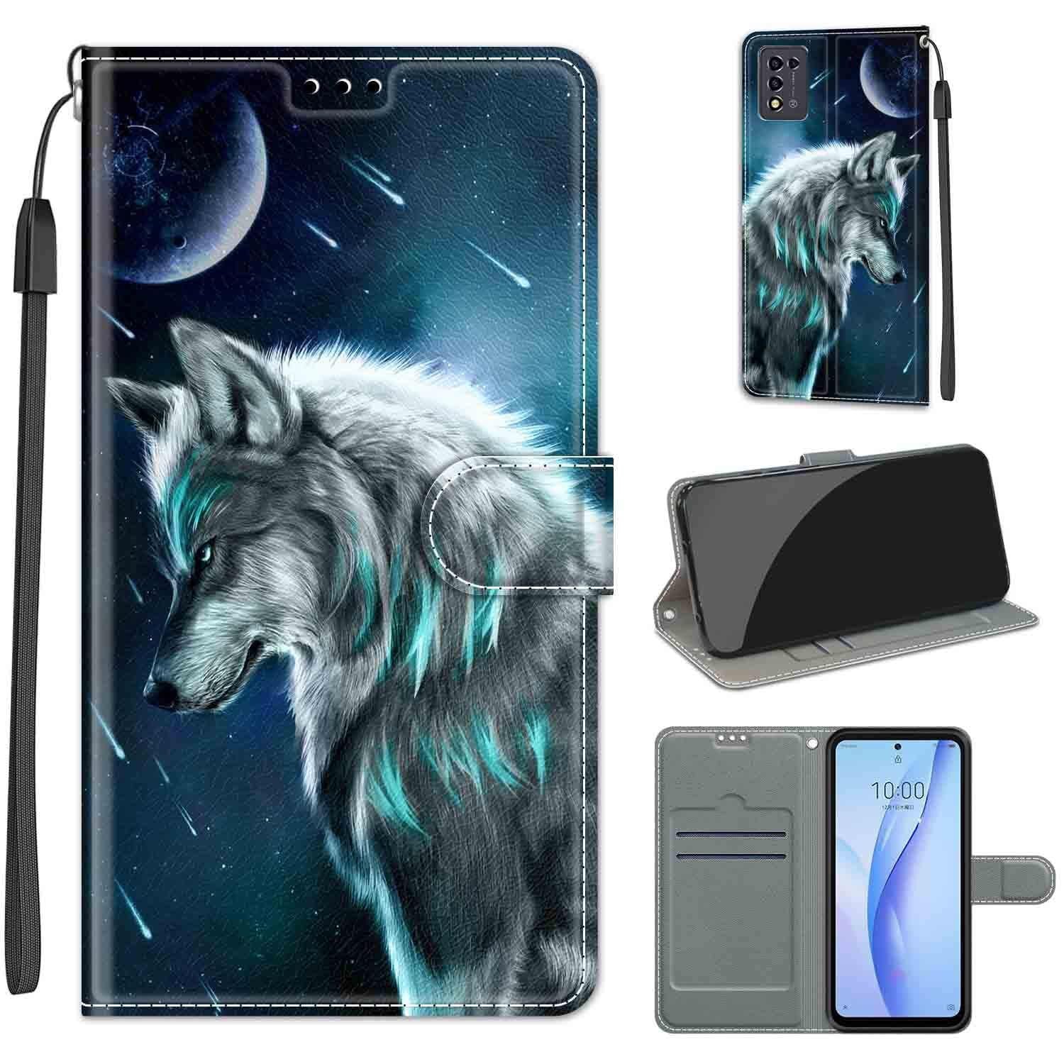 KENHONER A202ZT ケース 対応 ZTE Libero 5G III ケース libero 5g iiiケース libero5g3 ストラップ 手帳型 耐衝撃 リベロ5g 3世代対応 カバー マグネット式 カード収納 携帯カバー (狼)