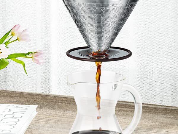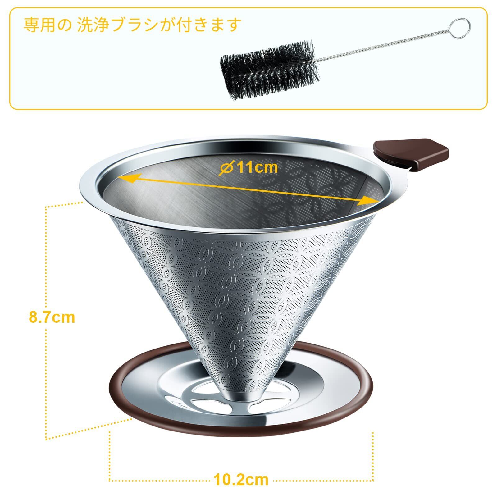 【ステンレス製】ドリッパーは上質なステンレス製フィルターを採用し、樹脂製、陶器製に比べて強度、耐熱、耐腐食性、耐久性に優れていて、何度も繰り返して利用することができ、とってもエコ的でお財布や環境にも優しいです。洗浄用のブラシが付きます。