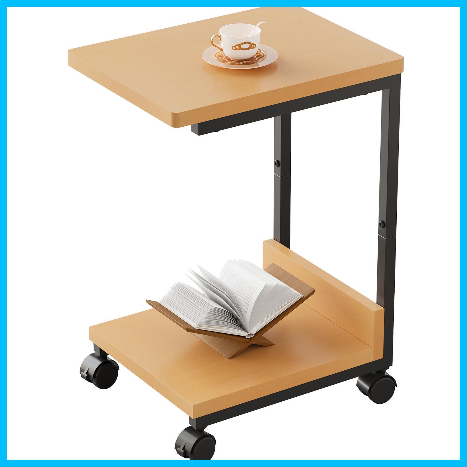 YeTom サイドテーブル キャスター付き ベッドサイドテーブル 可移動ベッドテーブル サイドワゴン コの字 テーブル 層幅37×奥行26×高さ53cm(キャスター付き)ナチュラル | グランメゾンショップ