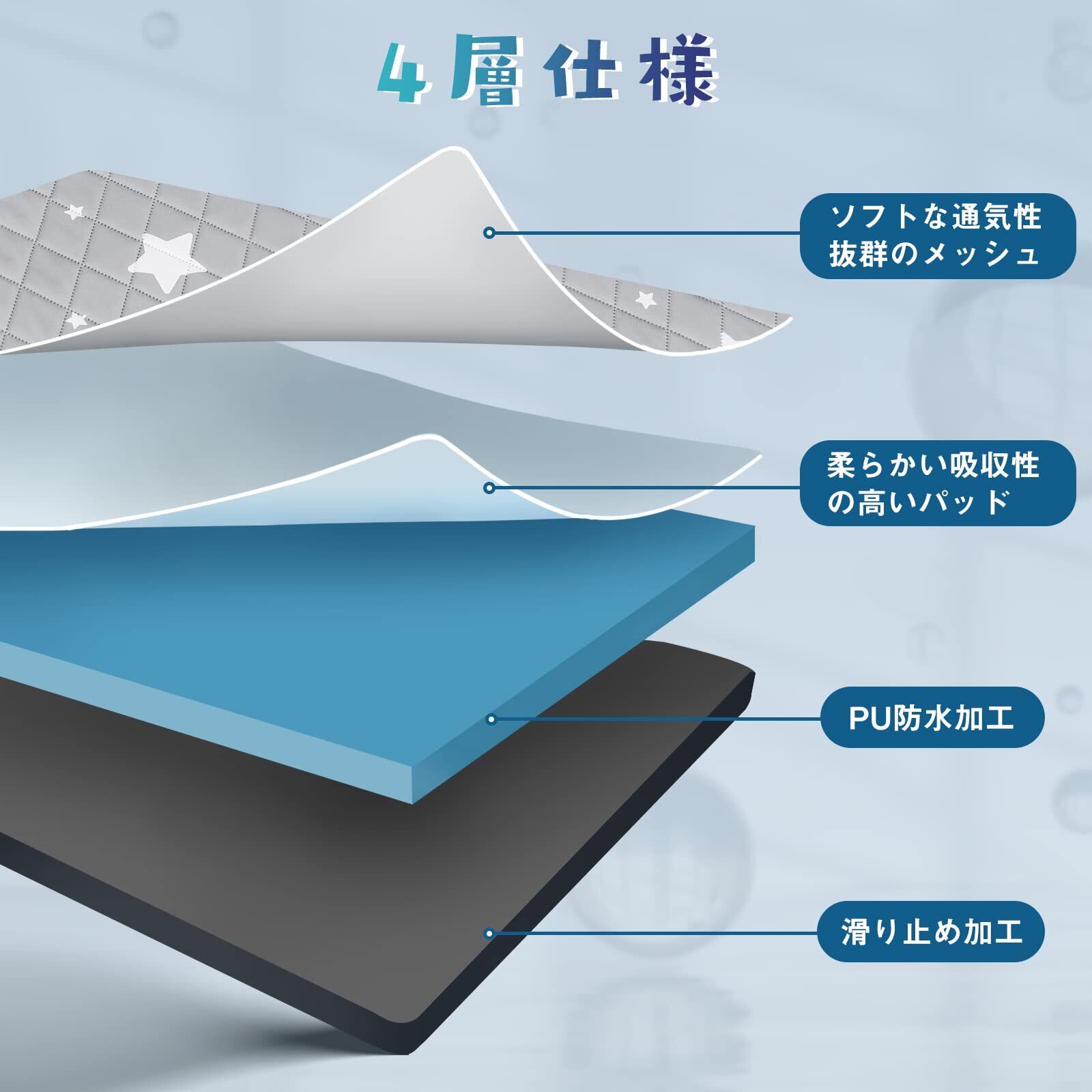 ポリエステルで作られたので乾きも早いです。おしっこした直後にすぐ吸収してくれるので、足が濡れることも少ないし、表面がびちょびちょになったりしません。もちろん裏に染みることもありません!裏面には滑り止めのツブツブが付いているのでしっかり固定されます