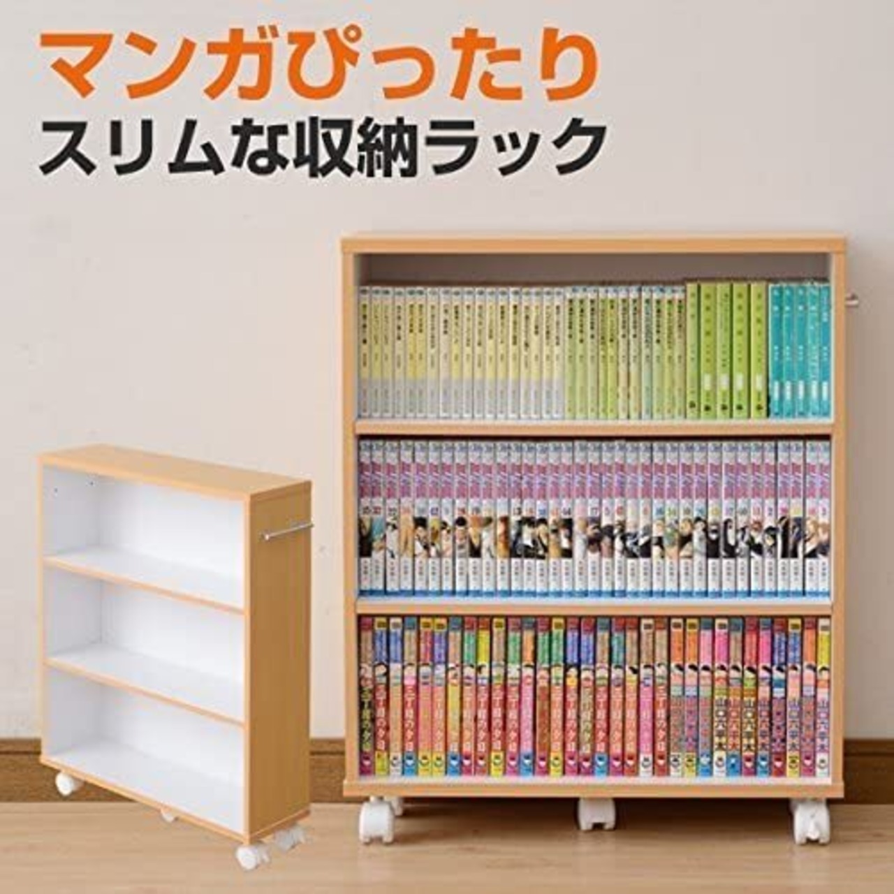 山善(YAMAZEN) 本棚 スリム (キャスター付き 本棚) 幅57.5×奥行17×高さ68.5cm 取っ手左右付け替えOK コミック (まんが) 収納目安105冊 組立品 ナチュラルビーチ CCW-7055C(NB/WH) | グランメゾンショップ