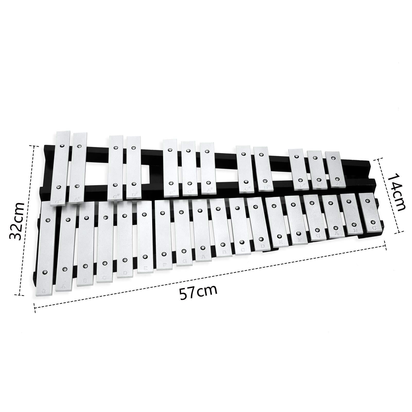 BQKOZFIN 卓上 鉄琴 30音 折り畳み グロッケン マレット4本 スタンド 収納バッグ付き 演奏 音楽会 発表会 学芸会 (シルバー)