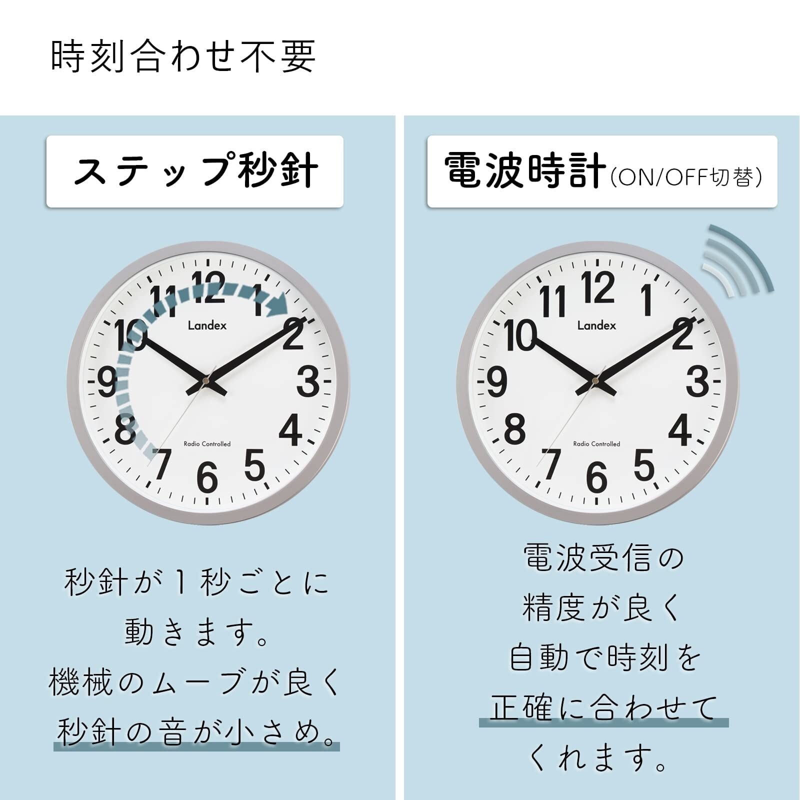 機能:電波時計、電波受信ON/OFF機能、ステップ秒針