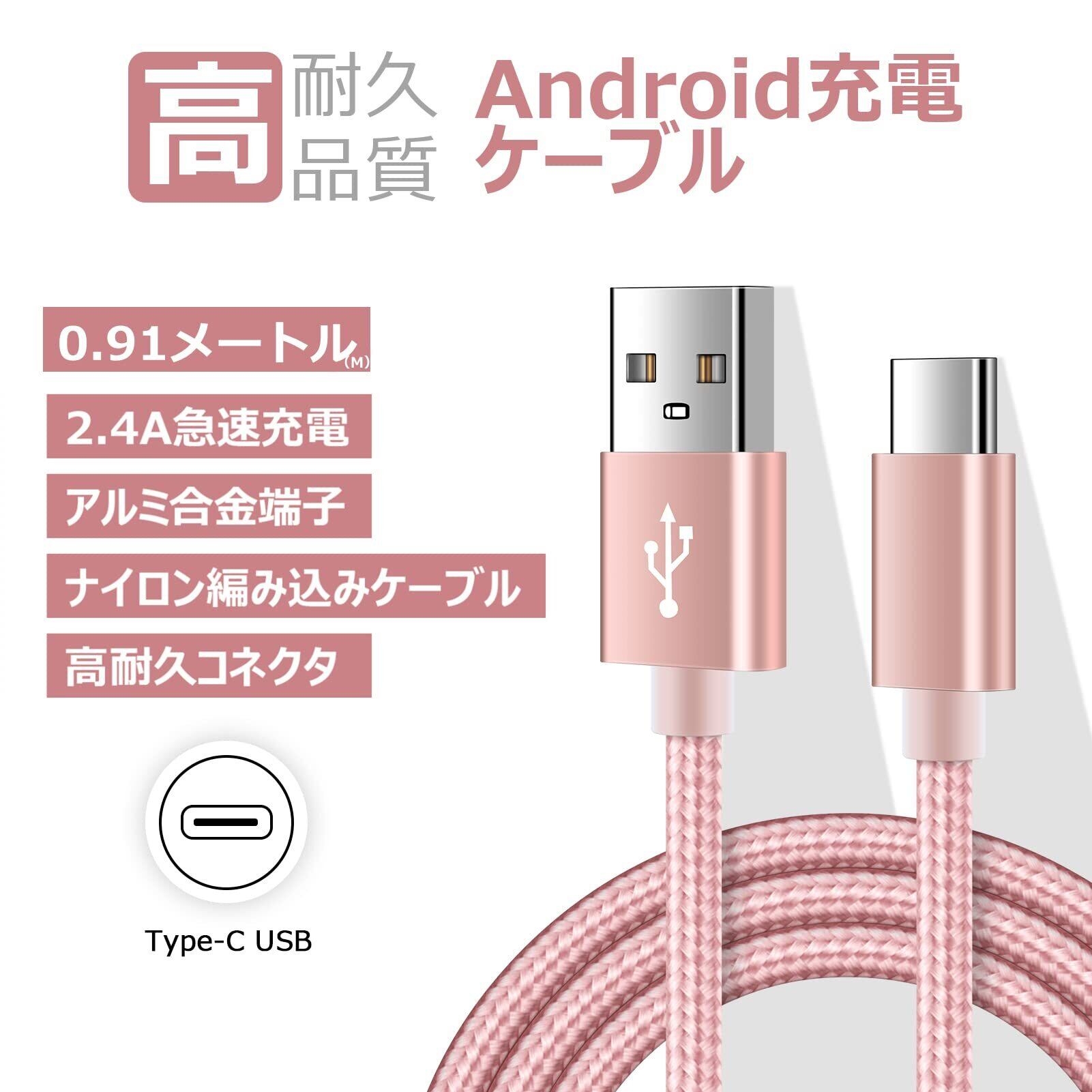 USB Type-C ケーブル QC3.0対応 【2本セット&0.91m】 usb c ケーブル スマホ充電ケーブル タイプC ケーブル iPoto 急速充電 Android充電ケーブル usbケーブル 充電ケーブル USBコード データ転送 断線防止 高耐久ナイロン iPad Air4,iPad Android などのタイプC多機種対応 ローズゴールド+シルバー | グランメゾンショップ