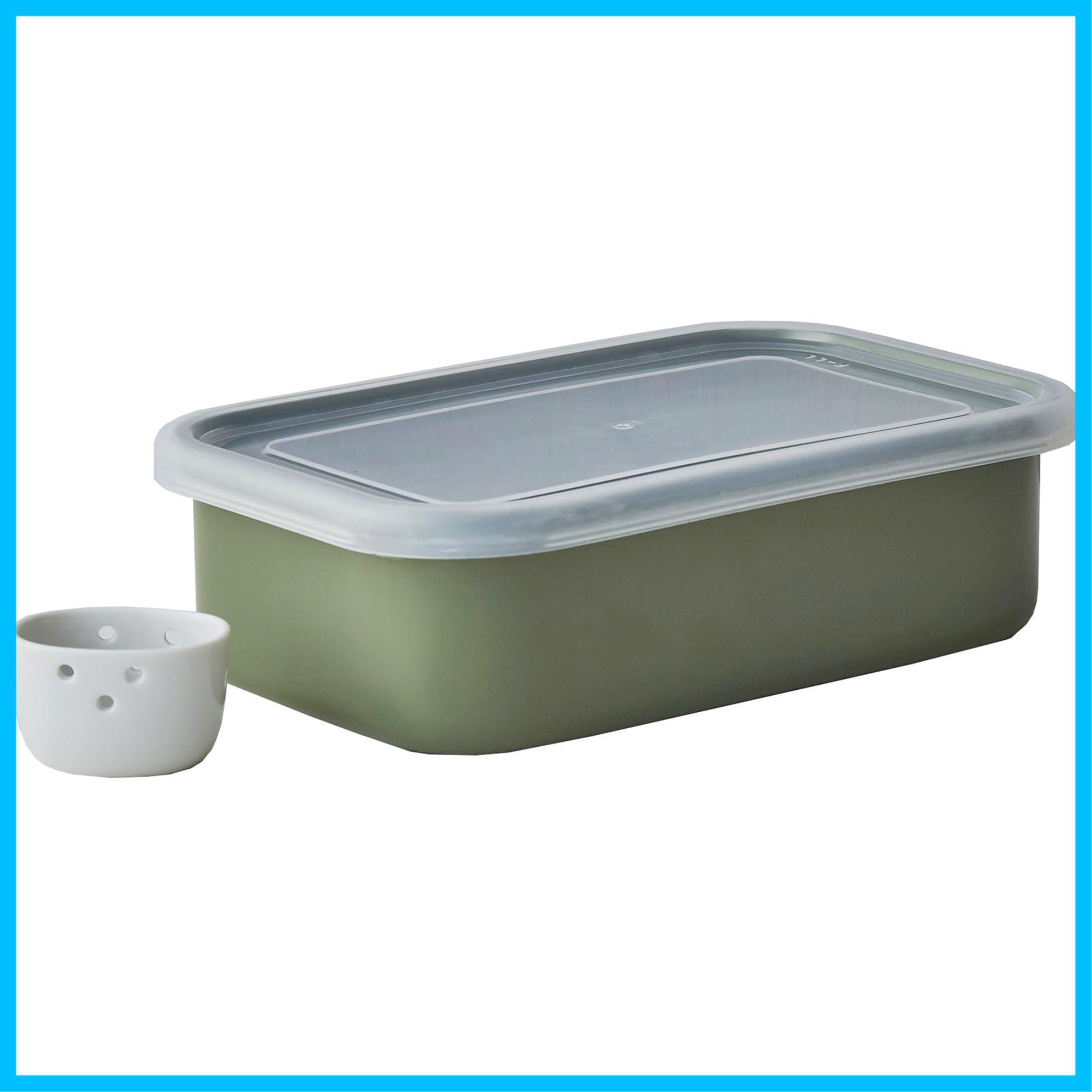 野田琺瑯(Nodahoro) ぬか漬け 小町 冷蔵庫 用 保存容器 蓋 水取 水抜 器 付き オリーブ 日本製
