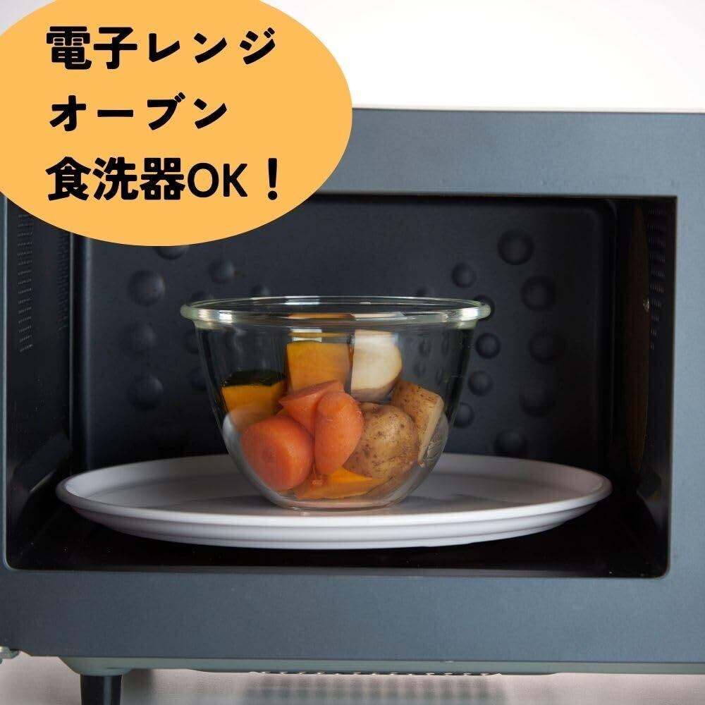【商品詳細】 本体サイズ:S: 幅15.6×奥行15.6×高10.2cm、口径15.6cm、満水容量900mL、M: 幅18.7×奥行18.7×高11.5cm、口径18.7cm、実用容量1500mL、L: 幅21.0×奥行21.0×高12.0cm、口径21.0cm、実用容量2200mL、本体材質:耐熱ガラス、日本製