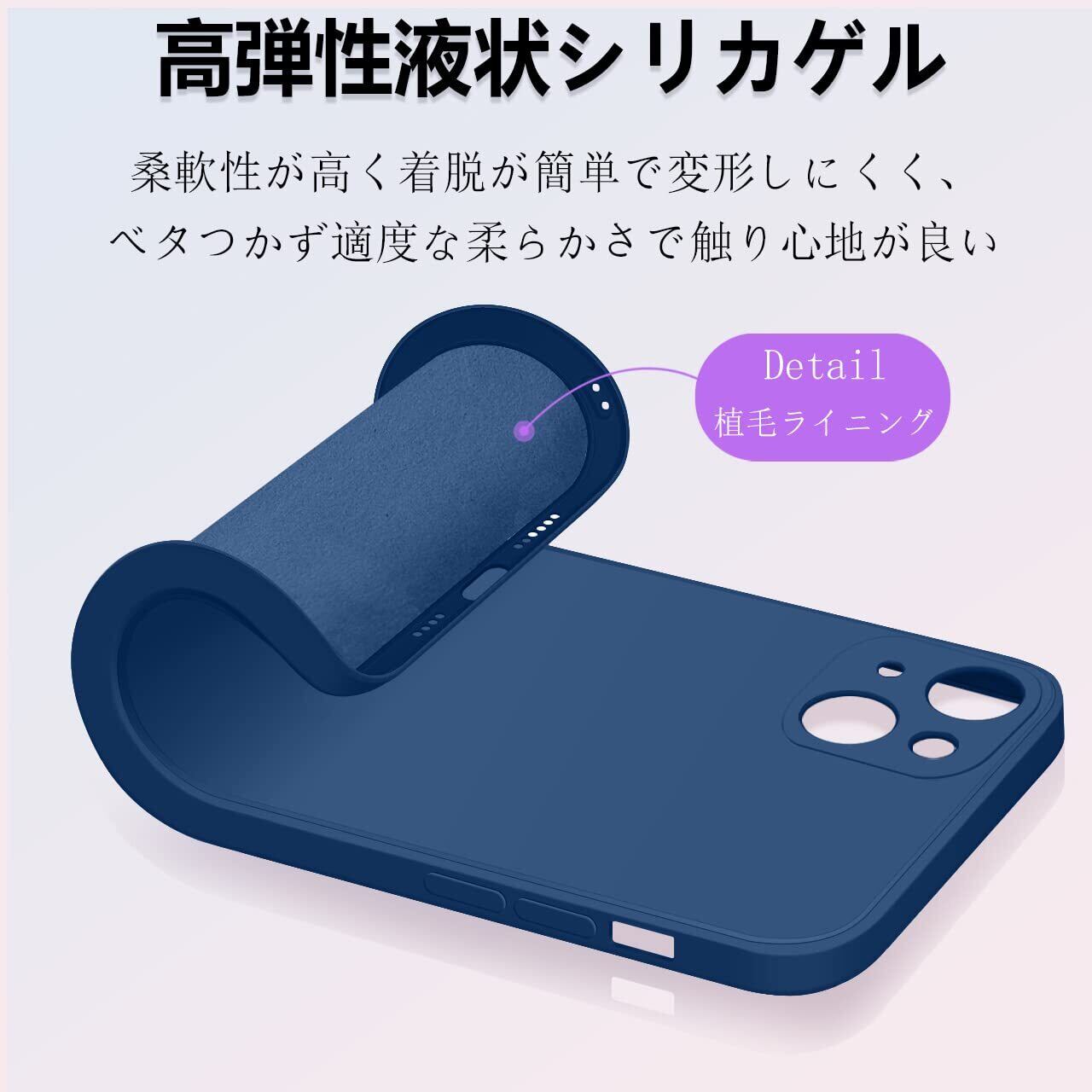 iPhone13 ケース リキッドシリコン 耐衝撃 レンズ保護 薄型 iPhone 13 カバー 指紋防止 ソフト ワイヤレス充電対応 おしゃれ ストラップホール付き (ブルー)