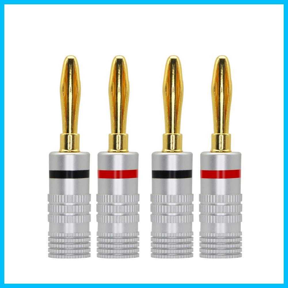 CERRXIAN 4mmソルダーレス バナナプラグ コネクタ バナナプラグ スピーカー【リア接続タイプ / 24k金メッキ/金属シェル】 ネジ締め方式のバナナプラグ スピーカーケーブル スピーカーワイヤー 壁プレート用(4本セット / 2ペア) | グランメゾンショップ