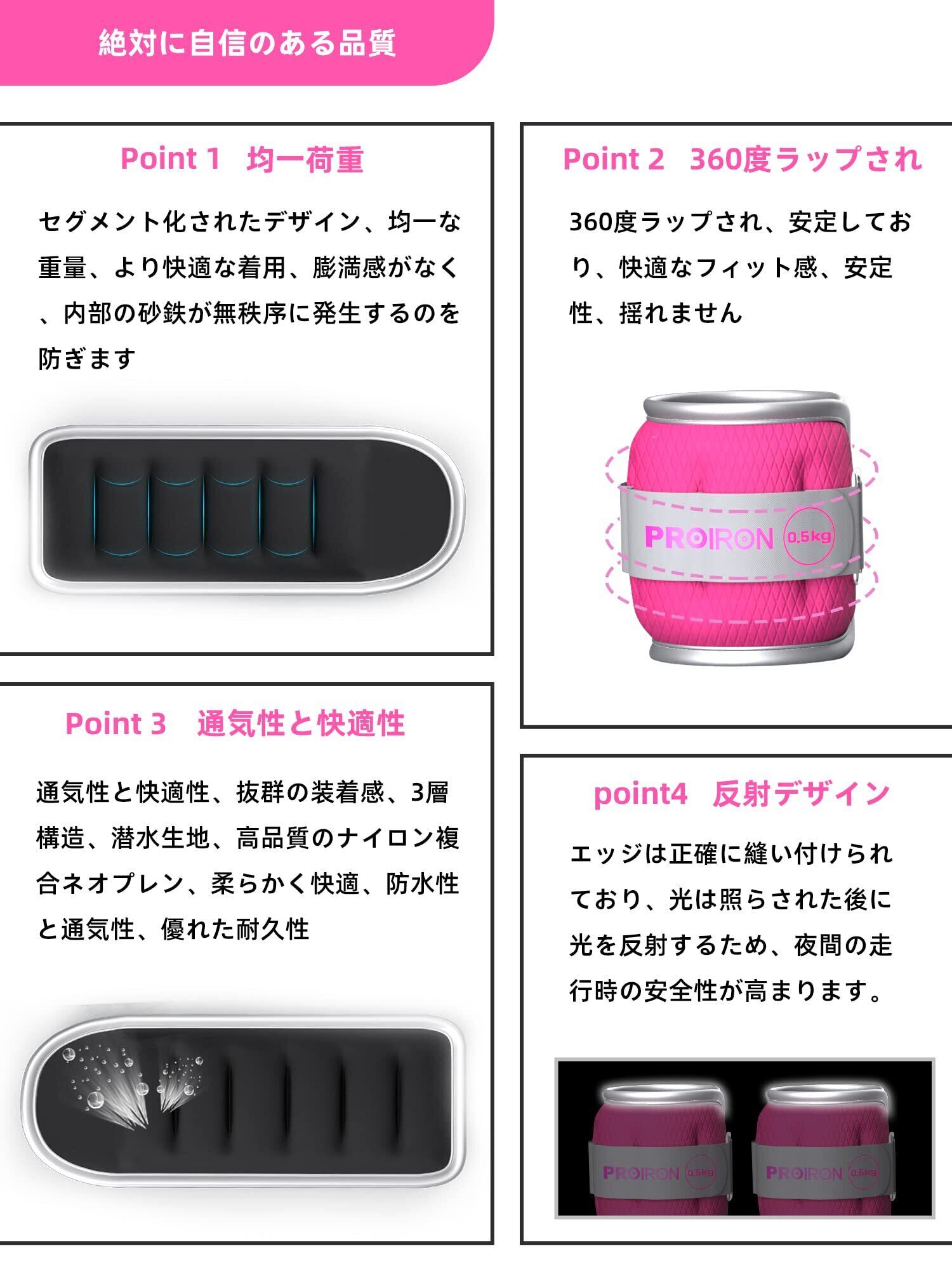 PROIRON アンクルウエイト リストウェイト パワーアンクル 0.5kg 1kg 1.5kg 2kg 超快適 装着感 2個セット 足首 トレ 運動不足解消