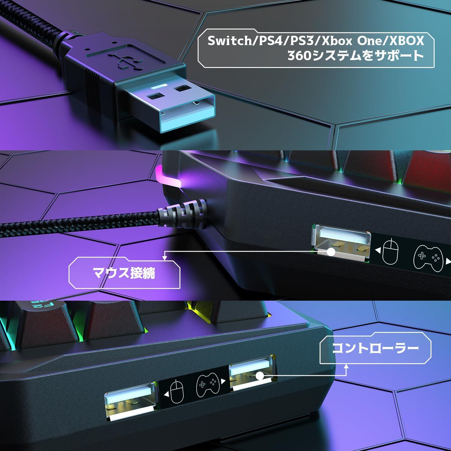 片手ゲーミングキーボード専用コンバーター 内蔵 RGB ゲーミングキーボード マウス セット 35キー USB有線 日本語取扱説明付き リストレスト付きSwitch/PS4/PS3/Xbox One/XBOX 360対応 (キーボート・マウス)