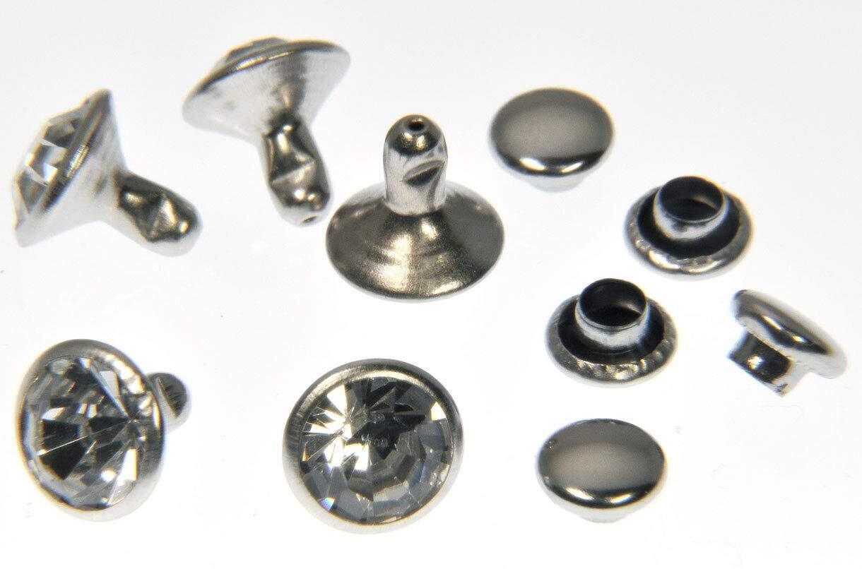 クリスタル風のガラス製ラインストーンをはめこんだ飾りカシメ リベット100個セットです。