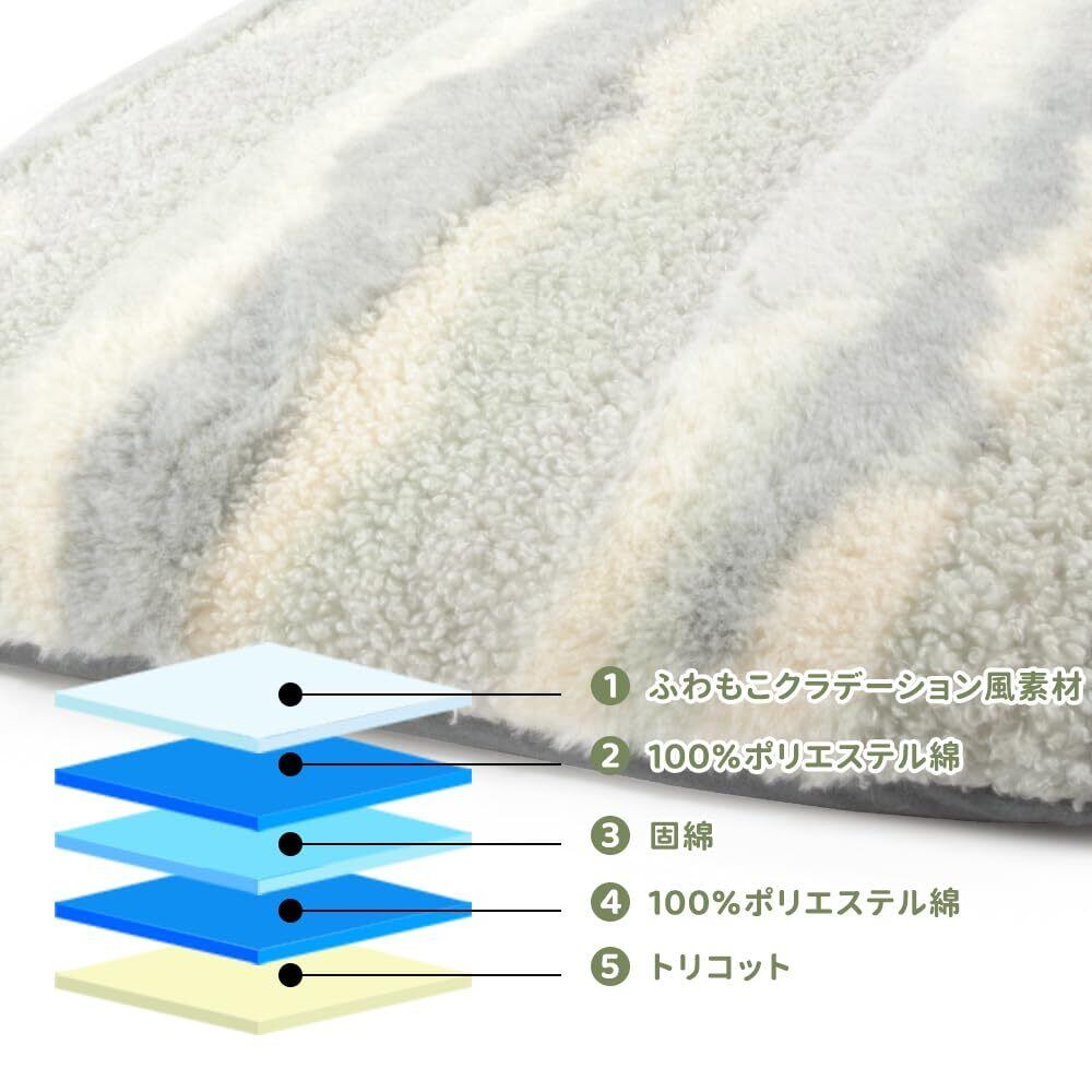 【上質な素材】表地はふわもこクラデーション風素材、裏はトリコット生地。 中材:硬綿3cm+上下ポリエステル綿各一層。適度なクッション性があって生地が肌触りよく、通気性が優しくて、通年でご利用いただけます。穏やかな色合いなので、どんなインテリアも 馴染みやすいです。