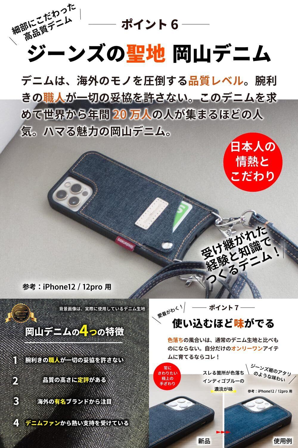 [ニードネットワーク] 岡山デニム iPhone11 用 スマホ ケース ショルダー ショルダー付き カード入れ ショルダータイプ スマホショルダー スマホショルダーストラップ
